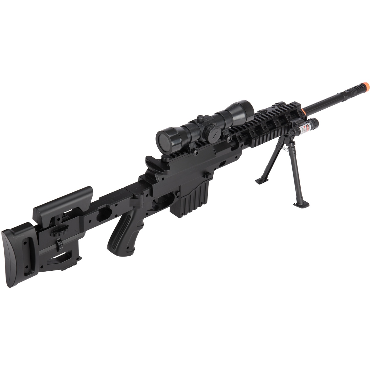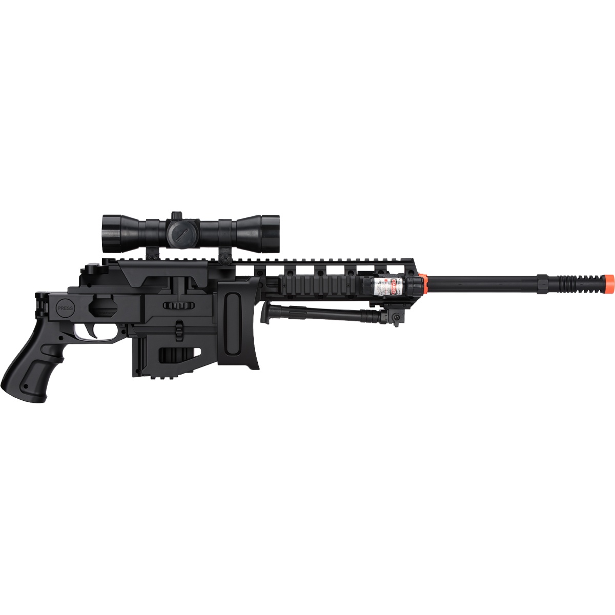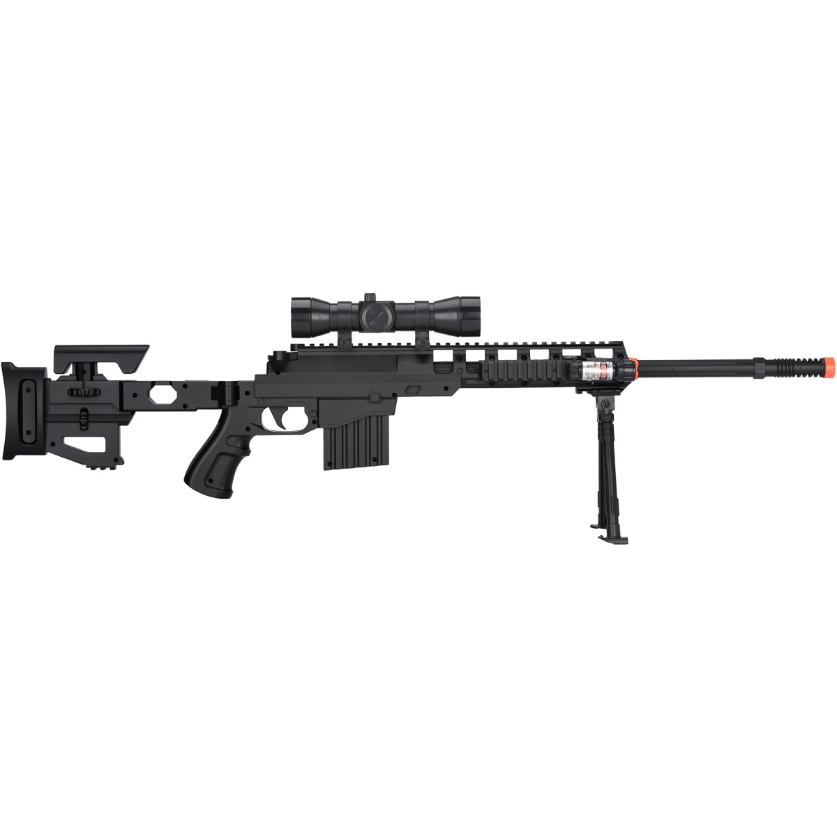 | Package Includes | 1X Rifle, 1X Laser, 1X Flashlight, 1X Bipod, 1X Mock Scope |