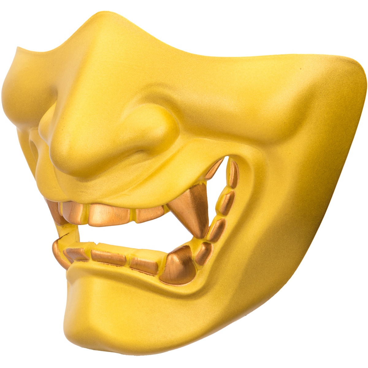 Emerge into the battlefield and intimidate your rivals wearing the Oni Ogre Half Face Mask by G-Force! Of course this mask has been designed to keep your mouth and face protected from BB impact, but most importantly the Oni face mask instills fear into your enemies by resembling a formidable ogre from Japanese folklore! The tough nylon polymer is difficult to tarnish and the cynical smile of the Oni is open to keep its classic look. Underneath the face mask is a soft padding base which is quite comfortable. One notable feature is a ventilated mesh around the immediate mouth area, resisting BB fire, preventing your eye protection from fogging up and assisting with heavy breathing. This under padding is designed to firmly wrap around your face to prevent chafing and keep your mask from slipping around. There are three great reasons to wear this mask; to keep your face protected while playing airsoft, to breathe freely while on the field, and to give your loadout a more dynamic, frightening, awesome look!