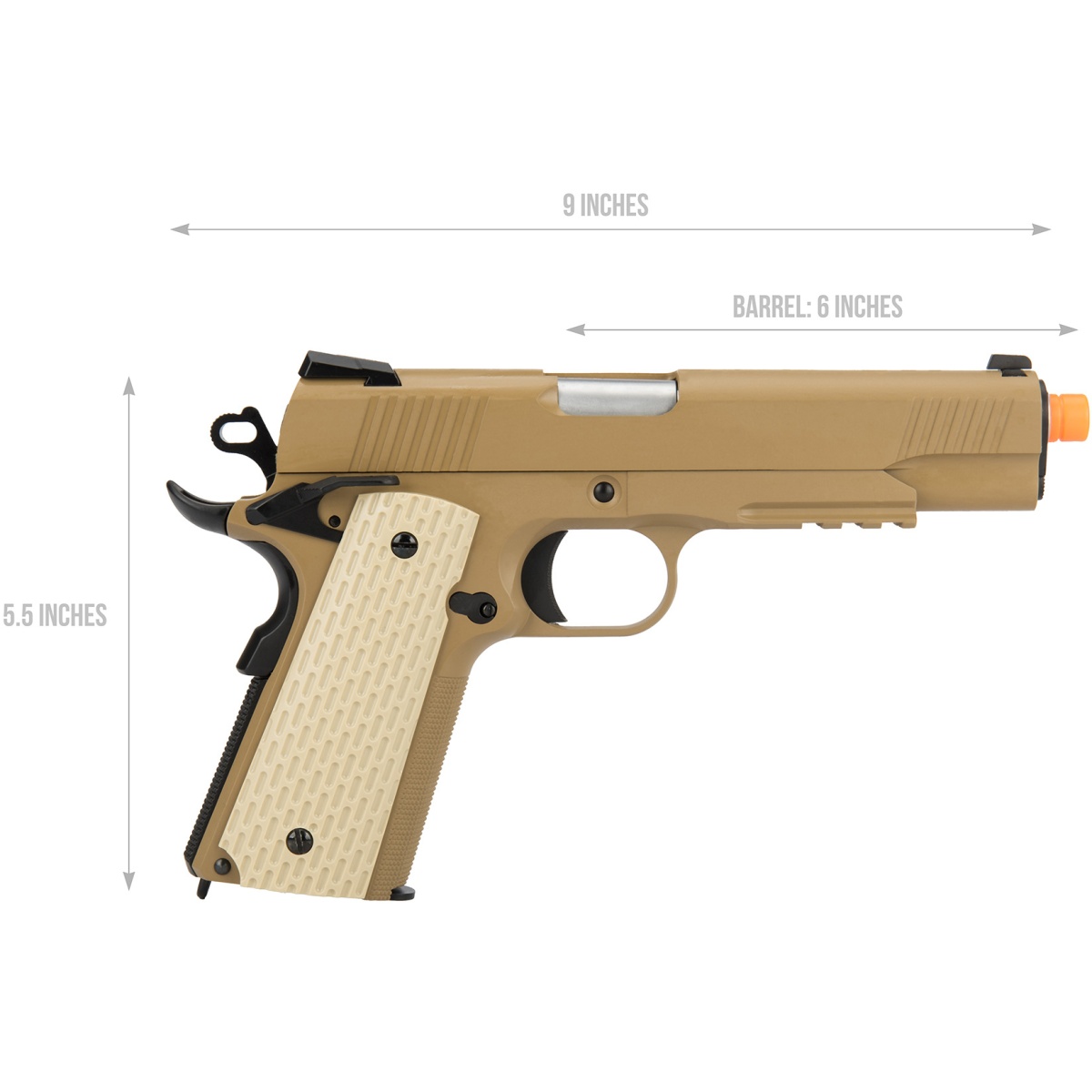 • Designed with front and rear serrations on the slide to assist in racking the airsoft pistol