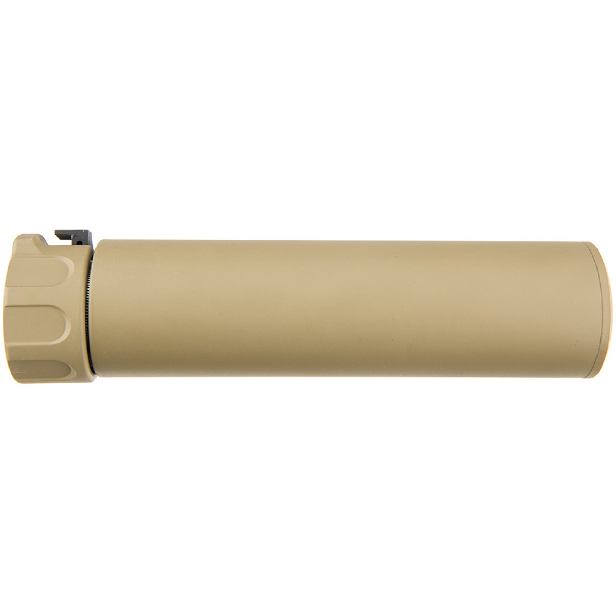 Enhance your airsoft rifle with the Atlas Custom Works Full Metal SOCOM QD Barrel Extension with Flash Hider in tan. This uniquely designed full metal mock suppressor attaches quickly with the QD platform, providing a realistic look and feel. The included durable flash hider withstands damage and wear, ensuring longevity. Compatible with most airsoft guns, it uses 14mm CCW threading for easy attachment. Built with an aluminum body and steel flash hider, this 6.3-inch extension is perfect for serious airsoft enthusiasts seeking performance and aesthetics. Upgrade your gear with this high-quality barrel extension, available now at Airsoft Megastore.