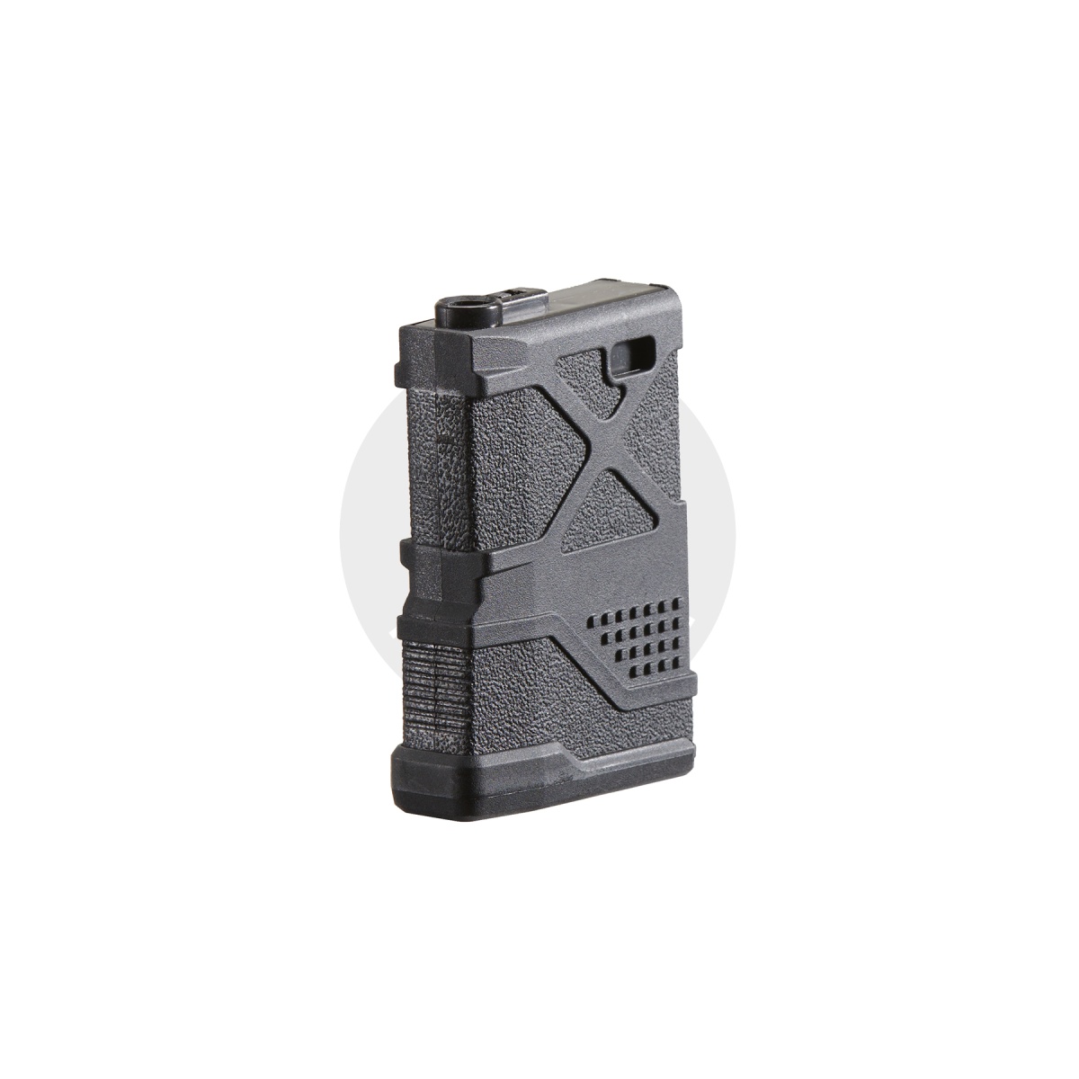 • Comes with both 120 round mid-cap metal training magazine and Alpha stock stores included 70rd short midcap magazine