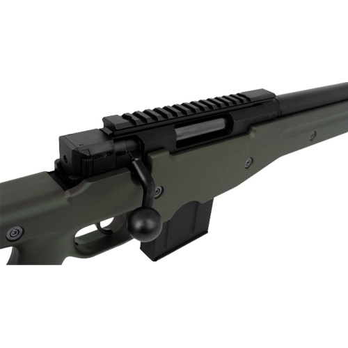 Introducing the Tokyo Marui L96 AWS Bolt Action Airsoft Sniper Rifle in Olive Drab, available exclusively at Airsoft Megastore! This high-performance rifle combines exceptional durability with precision accuracy. Built with a heavy-duty metal receiver and outer barrel, it guarantees reliability on the battlefield. The 20mm Picatinny rail allows easy attachment of scopes and optics for enhanced targeting. Designed for both comfort and functionality, the solid polymer handguard, trigger guard, and grip ensure lightweight maneuverability. With an adjustable cheek rest and stock, finding your ideal shooting position is a breeze. The adjustable hop-up system guarantees accurate and long-range shots every time. Get ready to dominate the field with the Tokyo Marui L96 AWS, where power meets precision.