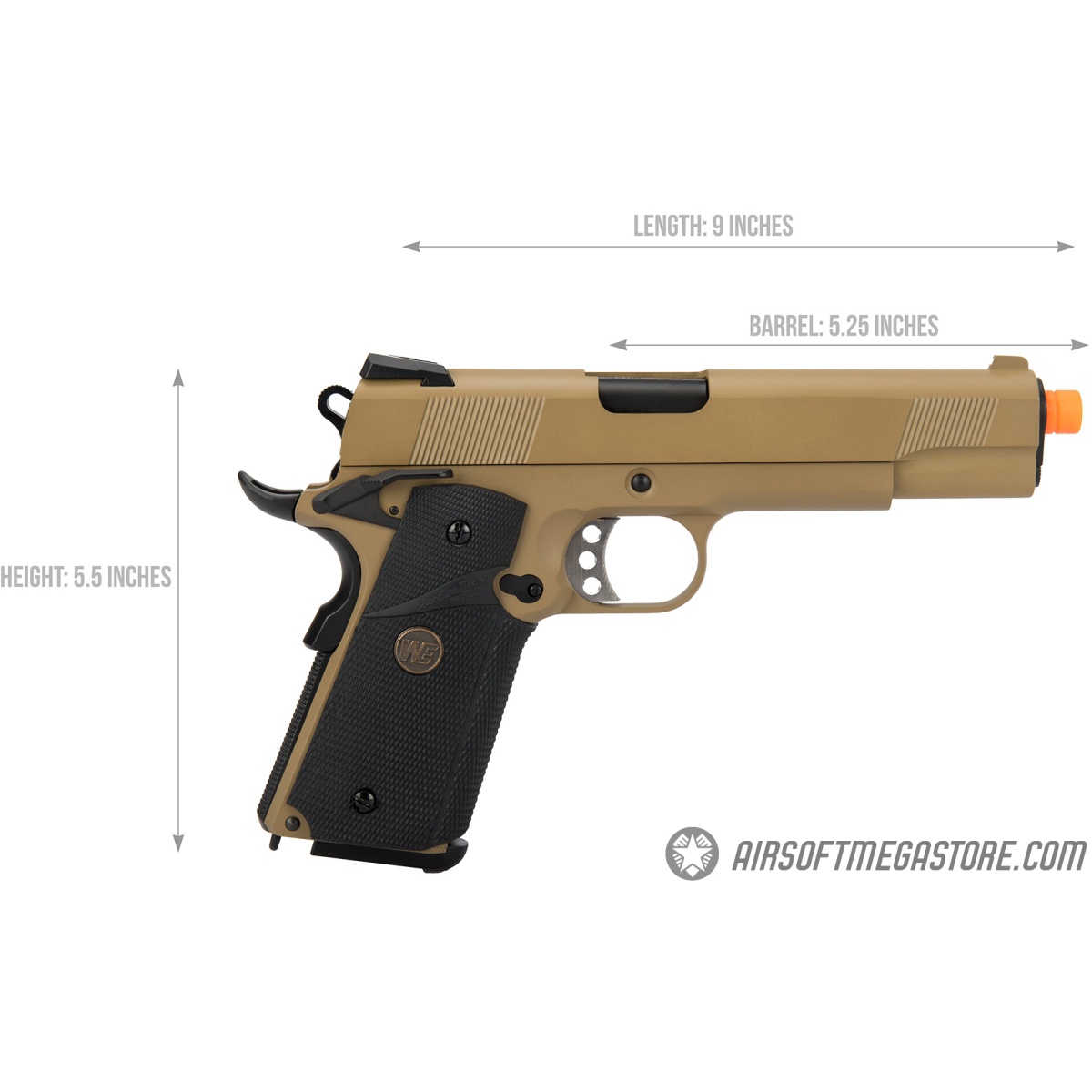 WE Tech 1911 Full Metal MEU Airsoft Gas Blowback Pistol - TAN