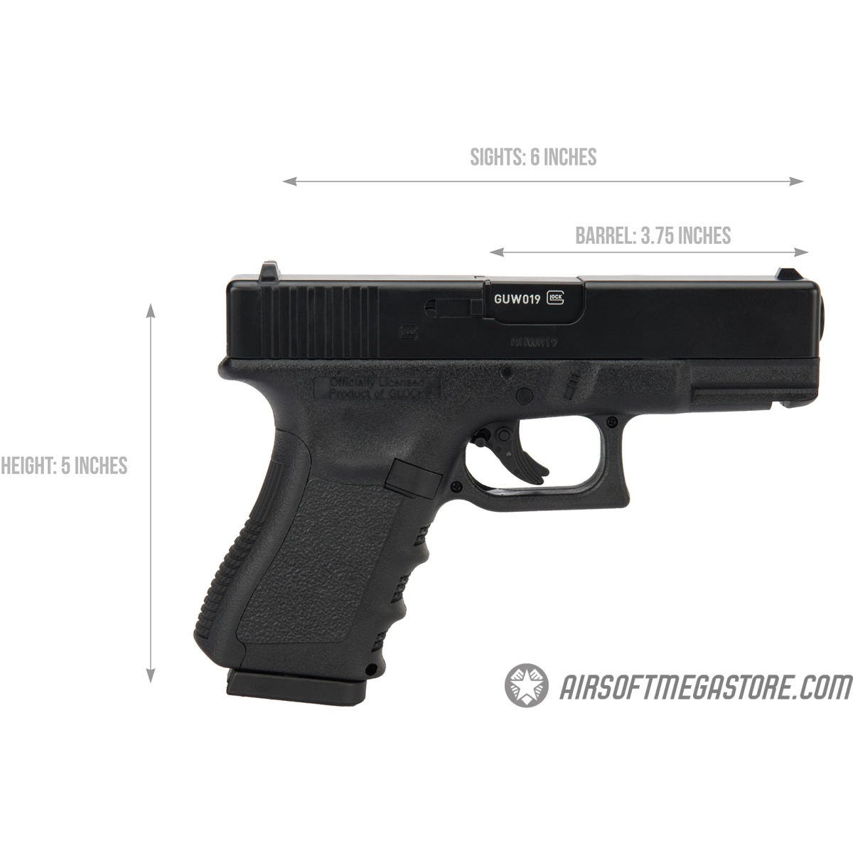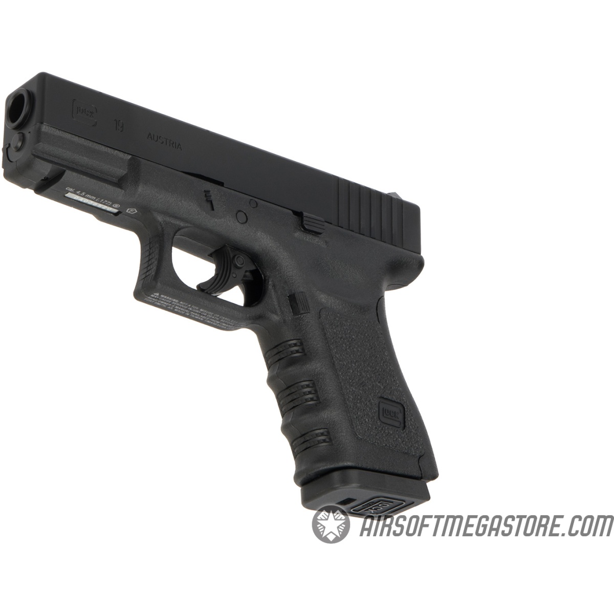 Official Glock Licensing: One of the most renowned firearm company's trusted by law enforcement personnel in local, state and federal agencies, Glock offers synonymous to tried and true pistols on the market. After many years of anticipation, Umarex USA has secured the renowned Glock license to be used in their line of airsoft and air guns. If you're looking for an authentic 1:1 scale replica of a Glock 19, there's no mistake in going with this new Umarex airgun. This Glock 19 looks and feels like its actual real steel counterpart, featuring officially licensed Glock trademarks on both sides of the slide and left side of the grip.