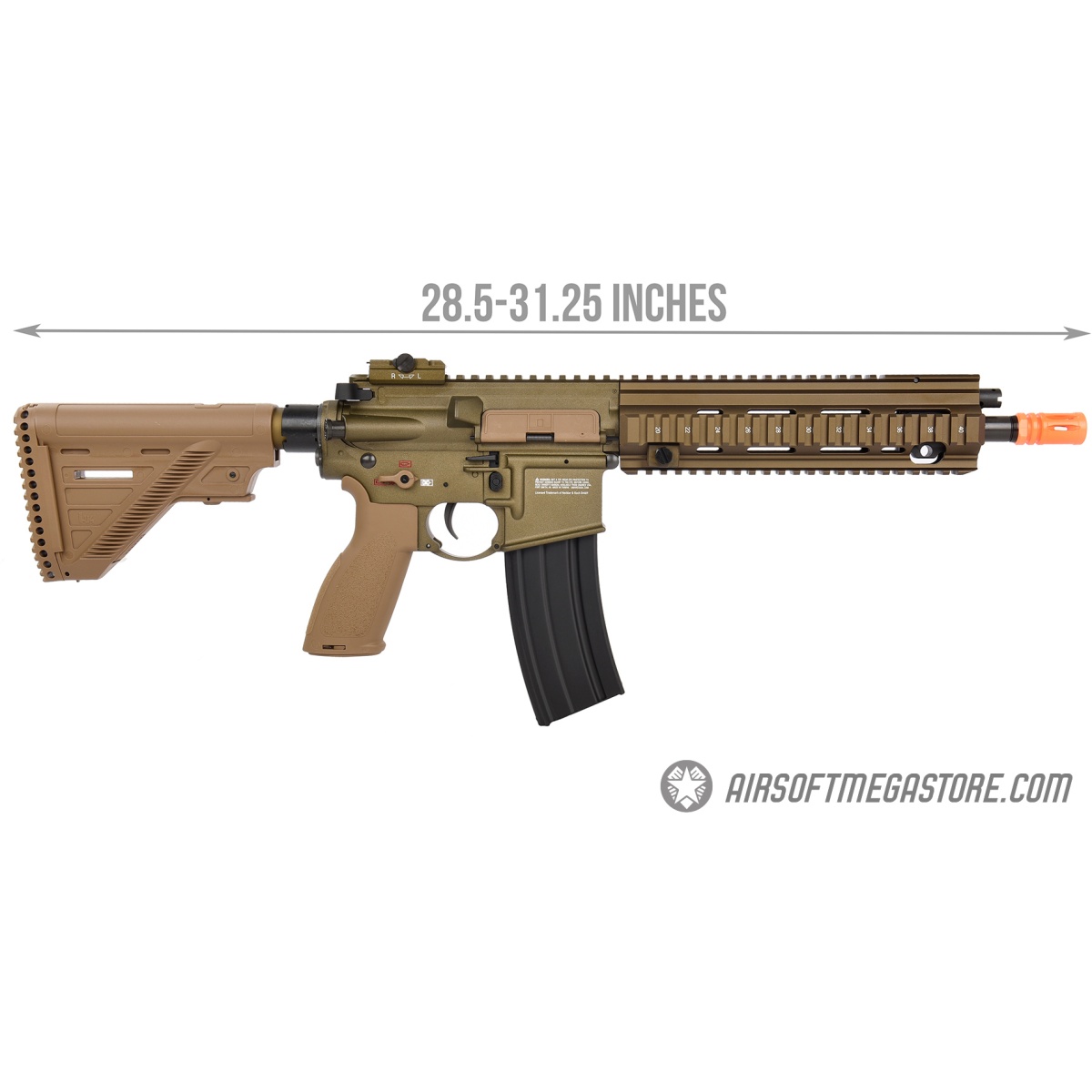 The Elite Force H\&K Licensed 416A5 M4 Carbine AEG is a high-performance electric airsoft rifle built for serious players who demand realism, reliability, and advanced features. With full metal upper and lower receivers and officially licensed Heckler & Koch trademarks, this rifle not only looks authentic but feels like the real deal. The reinforced polymer pistol grip and adjustable stock offer excellent ergonomics, reducing fatigue during extended use. It features the renowned Avalon Version 2 ECS gearbox with a functional bolt catch, quick-change spring system, and dual MOSFETs for fast, responsive trigger performance and long-lasting durability. The rifle’s CNC magazine catch adjusts to fit a wide range of M4-style magazines, while the oversized bolt and mag release offer quick and easy reloads in high-pressure situations.