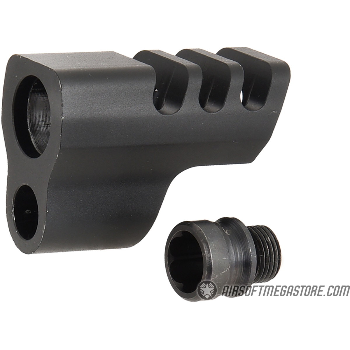 Disclaimer: This airsoft muzzle does not come with a painted orange tip. Please reference your state and local laws before attaching this accessory to your airsoft gun.