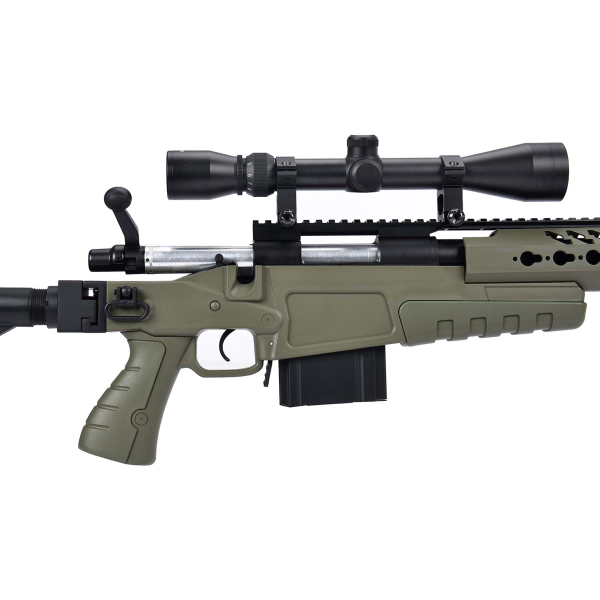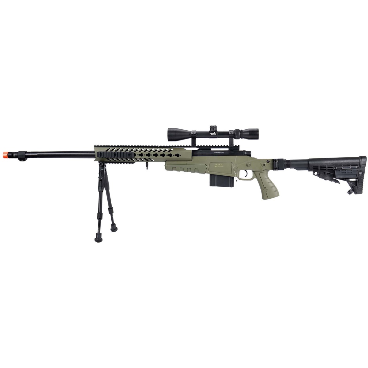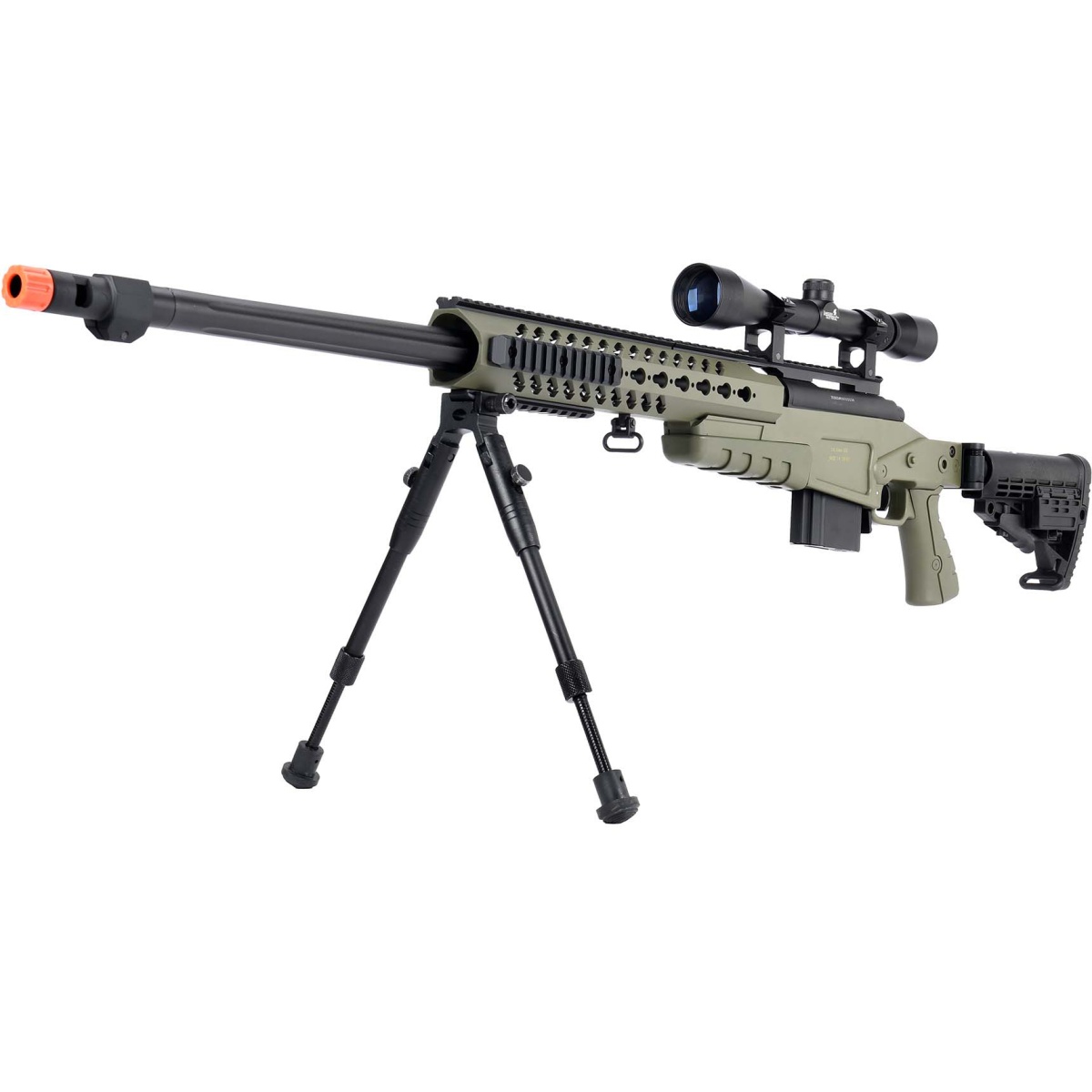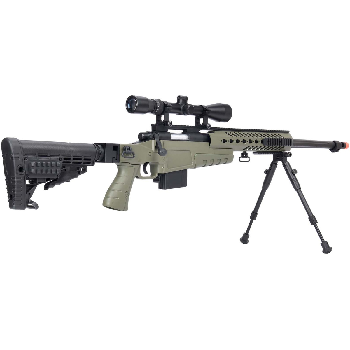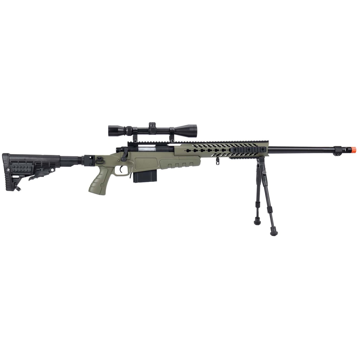WellFire MB4418-1 Bolt Action Airsoft Sniper Rifle w/ Scope & Bipod - OD GREEN