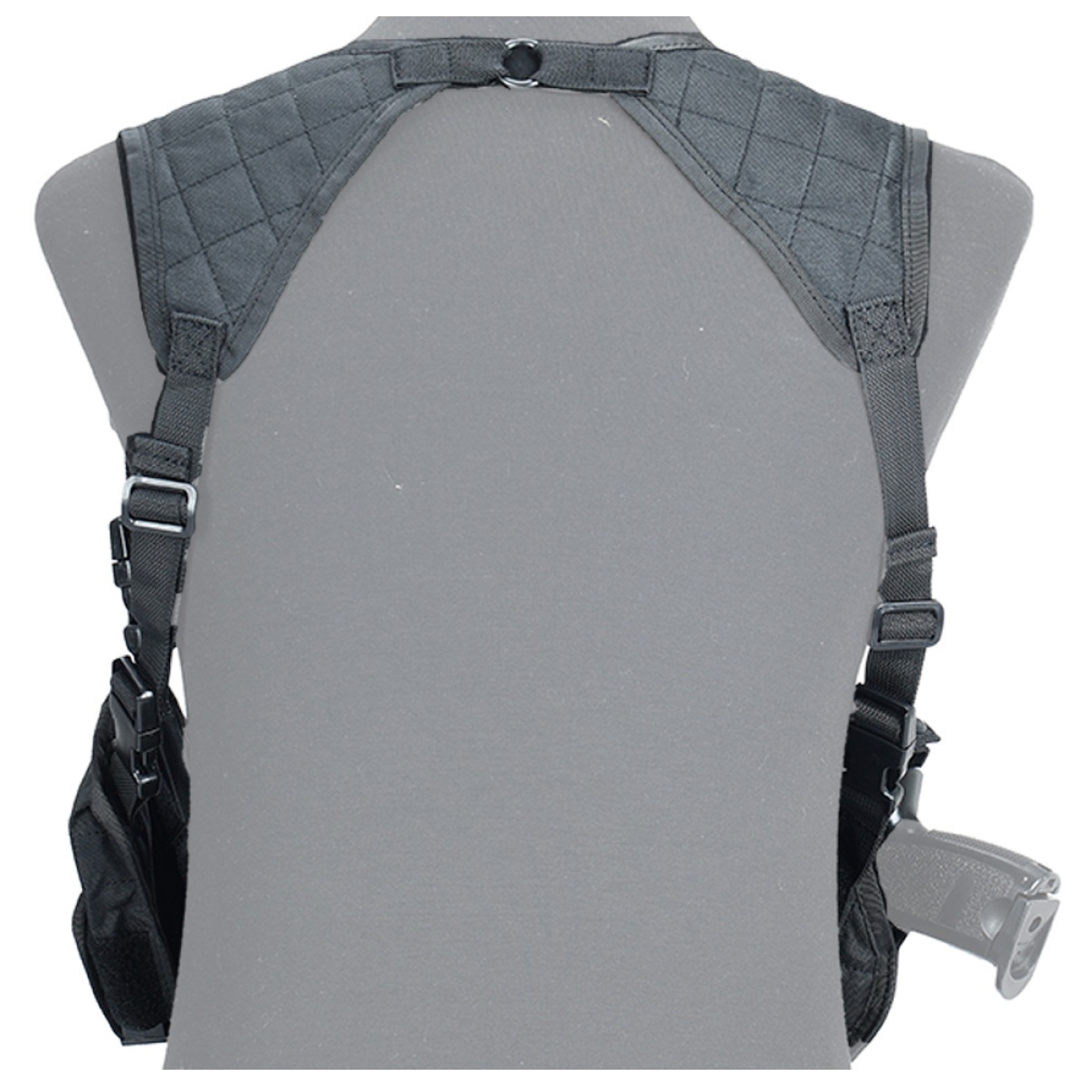 • Similar to a traditional shoulder holster design but a much lower profile