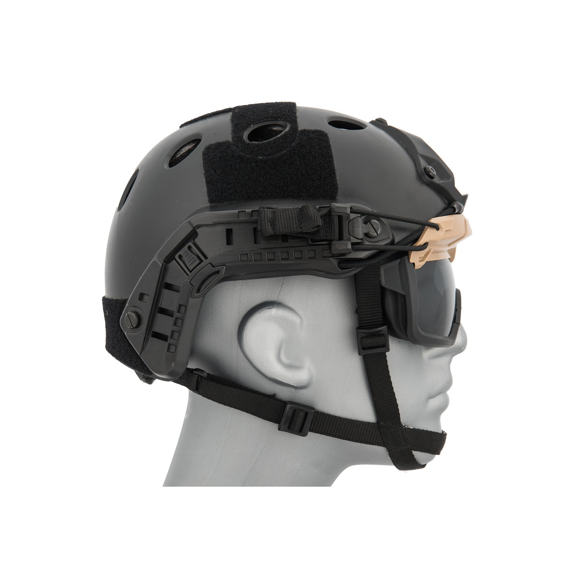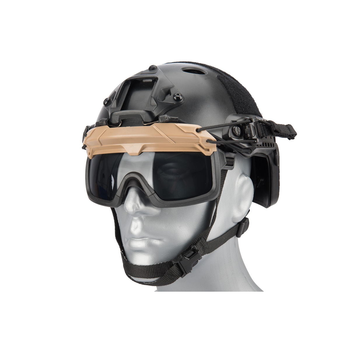 Lancer Tactical Safety Goggles for Helmets (Color: Tan) - Smoke