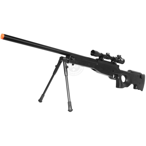 DOUBLE EAGLE full metal L96 bolt action sniper rifle with scope and bipod brings a professional level entry into spring bolt action precision. Built with a one piece precision metal barrel and reinforced polymer grip and stock, this rifle balances solid weight with field ready durability. Tuned to 420 to 460 fps with 0.20 g BBs and using a 30 round magazine, the L96 offers long range potential and repeatable accuracy for target practice and skirmish use. The full metal barrel and metal trigger assembly provide rigid alignment and consistent ballistics, while the rubber stock butt improves shooter comfort and follow up shot stability. At 44.9 inches overall and 9 lbs, this rifle presents a realistic heft that aids in steady holds and repeatable zeroing. Included scope and bipod let you lock onto targets faster and maintain a consistent shooting platform for long range engagements. Feature rich and upgrade friendly, this L96 model includes a 20 mm Picatinny top rail for mounting optics and accessories and a built in quick release bipod receptor for fast field setup. The supplied scope is paired with a sturdy bipod to help you dial in precise shots from prone or supported positions. The reinforced metal gearbox area and durable external finish make the rifle resilient to rough handling and sustained use. Whether you are building a long range role play kit, practicing precision shooting, or stocking a rental fleet for events, this L96 delivers dependable performance and authentic feel. This rifle is a strong choice for players who want a realistic, accurate, and hard wearing bolt action platform ready for field work.