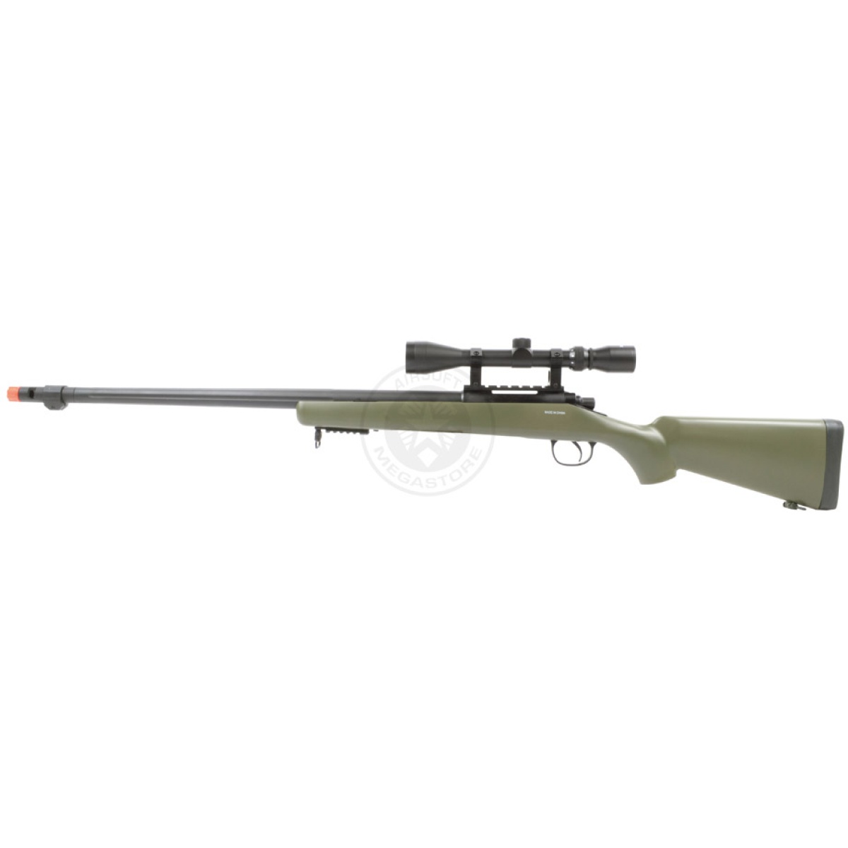 This Airsoft Megastore exclusive package comes complete with a 3-9x40 metal functional hunting scope with 3x-9x adjustable zoom that attaches to the sight rail and a full metal adjustable sniper bipod that easily attaches to the lower front rail. The bipod is adjustable and collapsible for added versatility, especially when on the move in the field. Both are designed to enhance this sniper's effectiveness and accuracy on the field, and are included with the rifle.