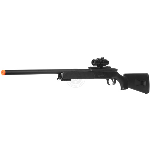 The body is nicely finished and most importantly, it shoots extremely hard and extremely accurately. With adjustable hop up and an extremely long, precision sniper barrel, power and accuracy are ensured. The newest Gen. 5 model features improved internal and external components as well as increased power and accuracy over its predecessors. The precision sniper barrel that is installed from the factory increases the range of this sniper by more than 20 percent over its predecessor, and allows you to hit your targets with pinpoint accuracy. Additionally, the sniper rifle comes with an electronic red dot scope for better target acquisition.