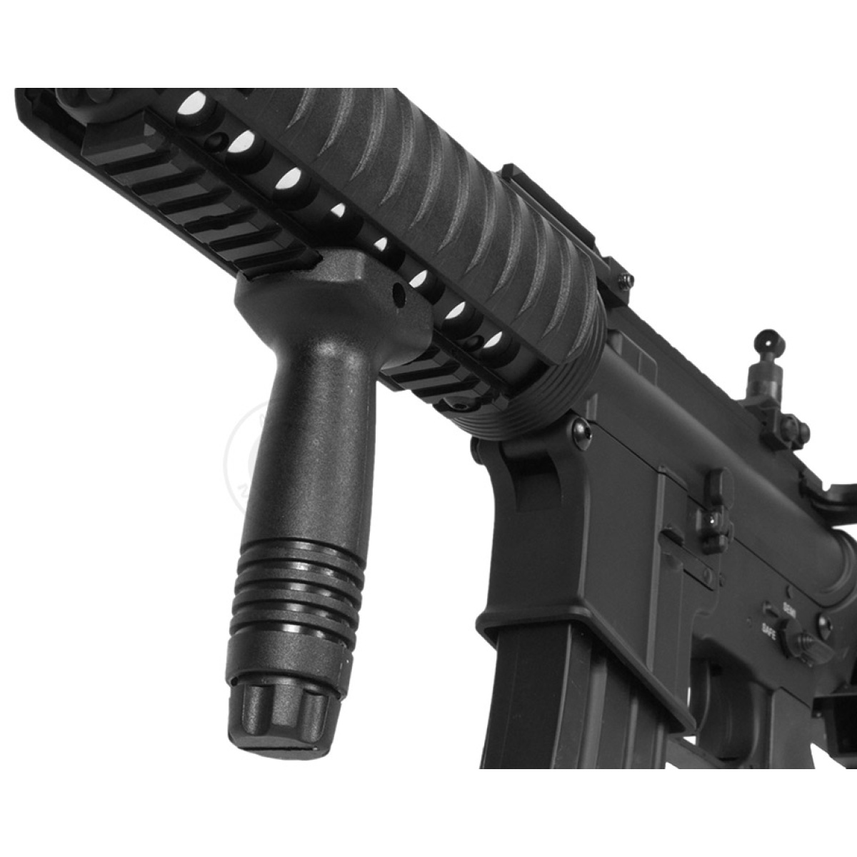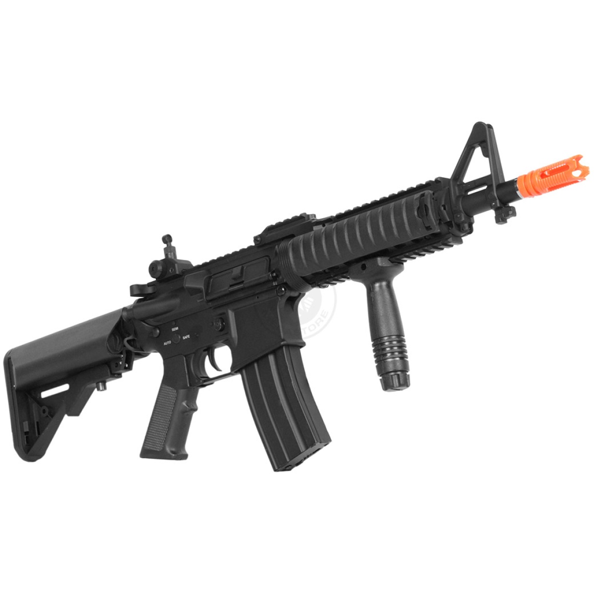 With a metal quad rail system up front, a metal body and gearbox in the middle and a highly versatile crane stock bringing up the rear, this full metal AEG from DBoys blends balance with style. And unlike most M4 airsoft rifles, this AEG comes with a compact rear flip-up sight, giving you plenty of space for airsoft optics and other accessories. It is one of the best choices for a full sized, full metal AEG rifle. From the front to back and top to bottom, this thing feels well-built and is definitely a step-up in quality, performance, build and reliability. The package comes complete with a 300-round magazine, battery/charger, one-point bungee sling and a tactical vertical foregrip.