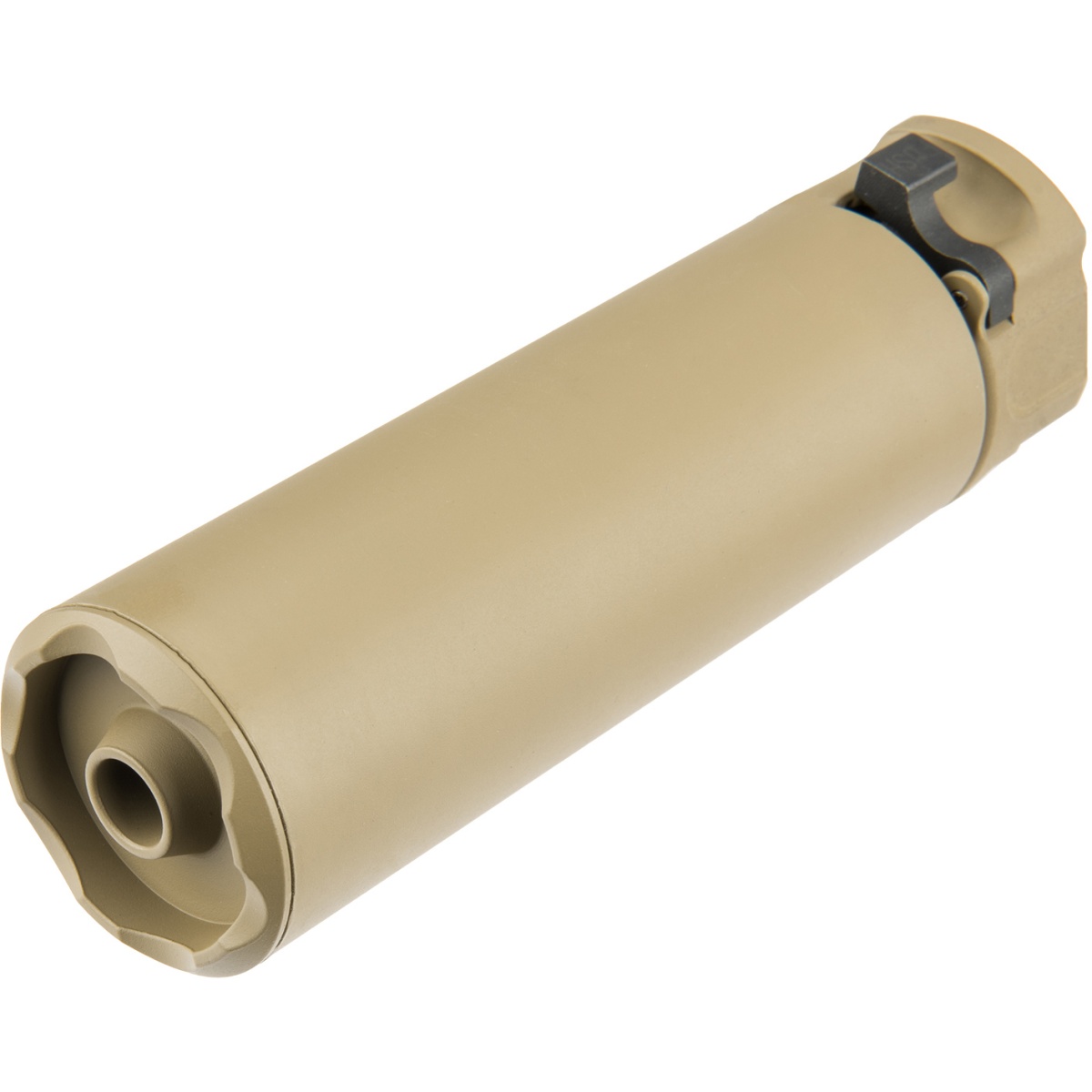 Elevate your airsoft rifle with the Atlas Custom Works Full Metal SOCOM QD 5.3" Barrel Extension with Flash Hider in tan. This mock suppressor features a unique full metal design and a quick-detach platform for rapid attachment to the flash hider. The robust metal flash hider ensures durability and resistance to wear. Compatible with airsoft guns with 14mm CCW barrels, it provides a realistic look and feel. With an inner barrel length of 38mm and a total length of 5.3 inches, this extension is perfect for serious airsoft enthusiasts. Upgrade your gear with this premium barrel extension, available now at Airsoft Megastore.