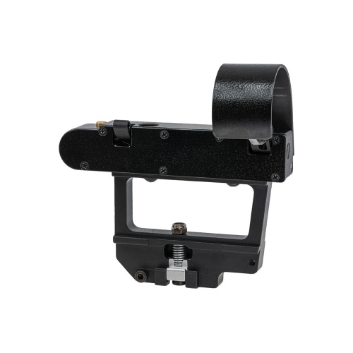 The hooded lens shroud helps reduce glare and protects the glass from bumps or debris, while simple windage and elevation dial controls allow quick and easy zeroing. The low profile design paired with the side mounted base keeps the optic aligned naturally with the rifle's shooting position, making it comfortable for both compact and full size AK replicas as well as SMG inspired builds. For players searching online for AK red dot sights, OKP-7 airsoft optics, or aluminum airsoft sights that improve speed and handling, this model offers a dependable and practical solution. Its combination of durability, clarity, and AK specific mounting makes it an appealing choice for anyone wanting a fast, responsive aiming system that performs well in close quarters and mid range engagements. This sight upgrades both the look and performance of an AK platform, giving players a reliable aiming tool built for modern airsoft gameplay.