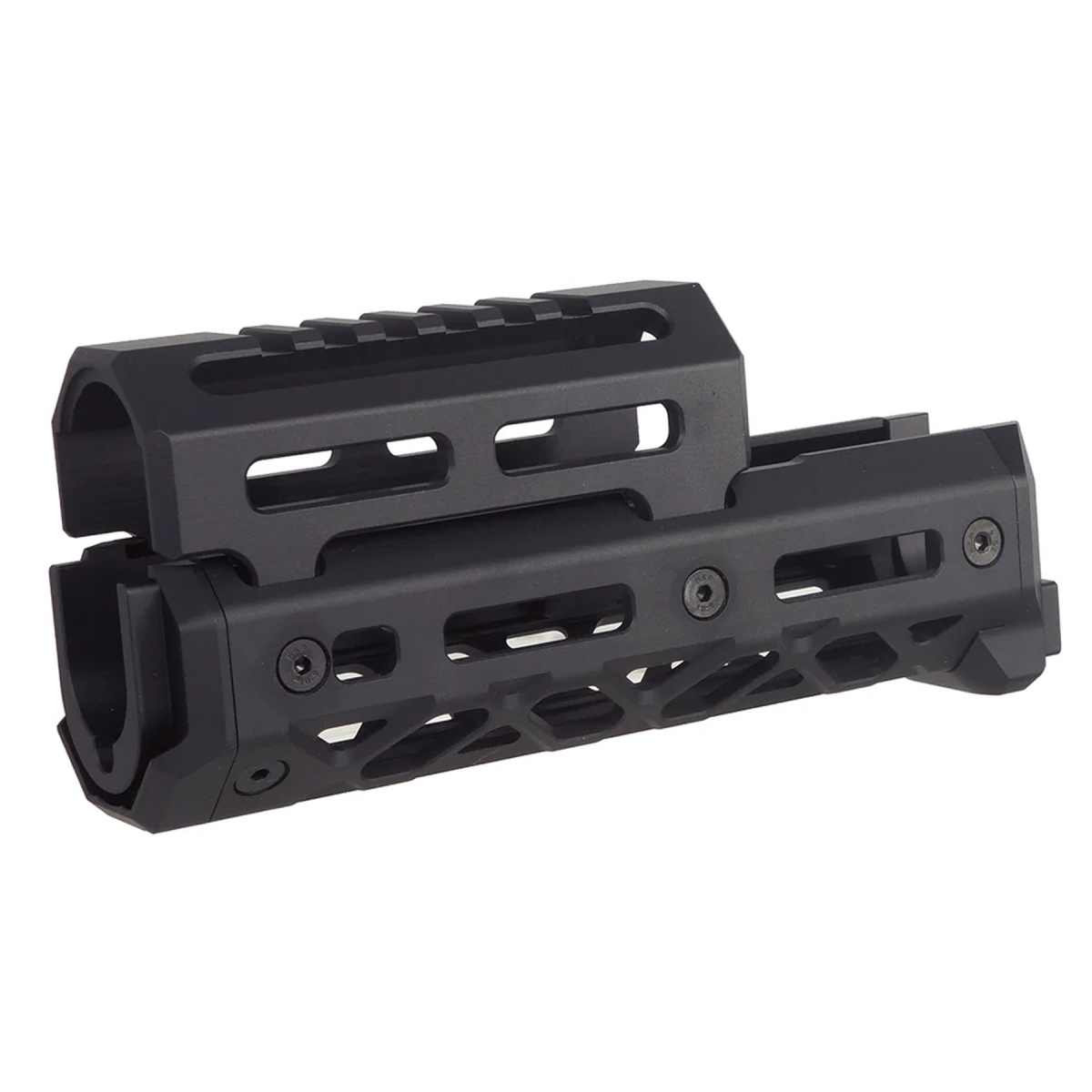 The Atlas Custom Works Short M-LOK Handguard for CYMA AK Airsoft Rifles is a compact, high-performance upgrade built for players who want to modernize their AK platform without compromising durability. Constructed from precision CNC-machined aluminum, this handguard offers exceptional rigidity while maintaining a lightweight profile at just 300 grams. The handguard is inspired by the sleek and aggressive Крук CRC 1U040 design, giving your rifle a contemporary tactical aesthetic that pairs perfectly with modern AK builds. Its short length makes it ideal for fast, mobile playstyles in both indoor CQB and outdoor field environments. Outfitted with a full M-LOK mounting interface, this handguard supports a wide variety of tactical accessories including vertical grips, flashlights, and lasers-allowing you to customize your loadout exactly how you need it. Designed specifically for CYMA and GHK-spec AK GBB rifles, the handguard offers a secure and stable fit without any unnecessary play or movement. Whether you're upgrading for aesthetics, functionality, or both, this CNC aluminum handguard enhances control, improves accessory placement, and helps reduce front-end weight. For players searching for a modern M-LOK handguard for AK platforms, a CNC aluminum AK upgrade, or a performance-driven AK rail system, the Atlas Custom Works Short M-LOK Handguard is available now and built to perform under pressure.