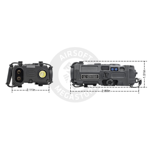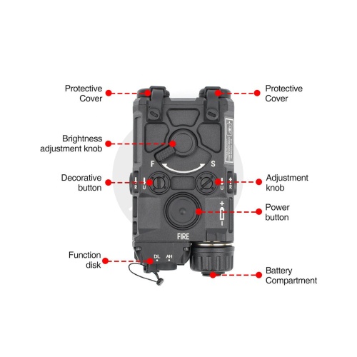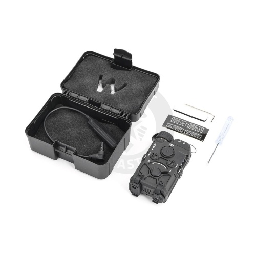 • On gun laser with functions: white light (constant on / momentary on / strobe), white light + red laser, red laser (constant on / strobe), IR laser