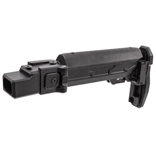 Atlas Custom Works Adjustable Telescopic Folding Stock w/ 4 Position Cheek Riser for GHK AKM V3 GBBR Airsoft Rifles - (Black)