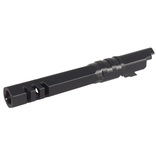 The Atlas Custom Works Stainless Hexagon Outer Barrel for Tokyo Marui Hi-Capa 5.1 GBB Pistols is a precision-engineered upgrade that adds both style and performance to your sidearm. Constructed from high-grade stainless steel, this outer barrel is built for durability and long-term reliability under heavy use. Its fluted design not only gives your Hi-Capa a sleek, aggressive look but also helps reduce weight without compromising strength. The anodized finish enhances corrosion resistance and adds a clean, polished appearance that complements any custom pistol build. Designed specifically for Tokyo Marui Hi-Capa 5.1 GBB models and compatible clones, this barrel features 11mm clockwise internal threading, allowing you to easily mount suppressors, tracer units, or other threaded accessories. Weighing in at just 110 grams, it maintains optimal balance for fast target transitions and smooth cycling. Whether you're building a competition-ready Hi-Capa or simply upgrading your internals, this stainless steel Hexagon outer barrel is a must-have for enhanced durability, style, and accessory compatibility. Available now, it's the perfect addition for players who demand performance-driven components with a premium finish.