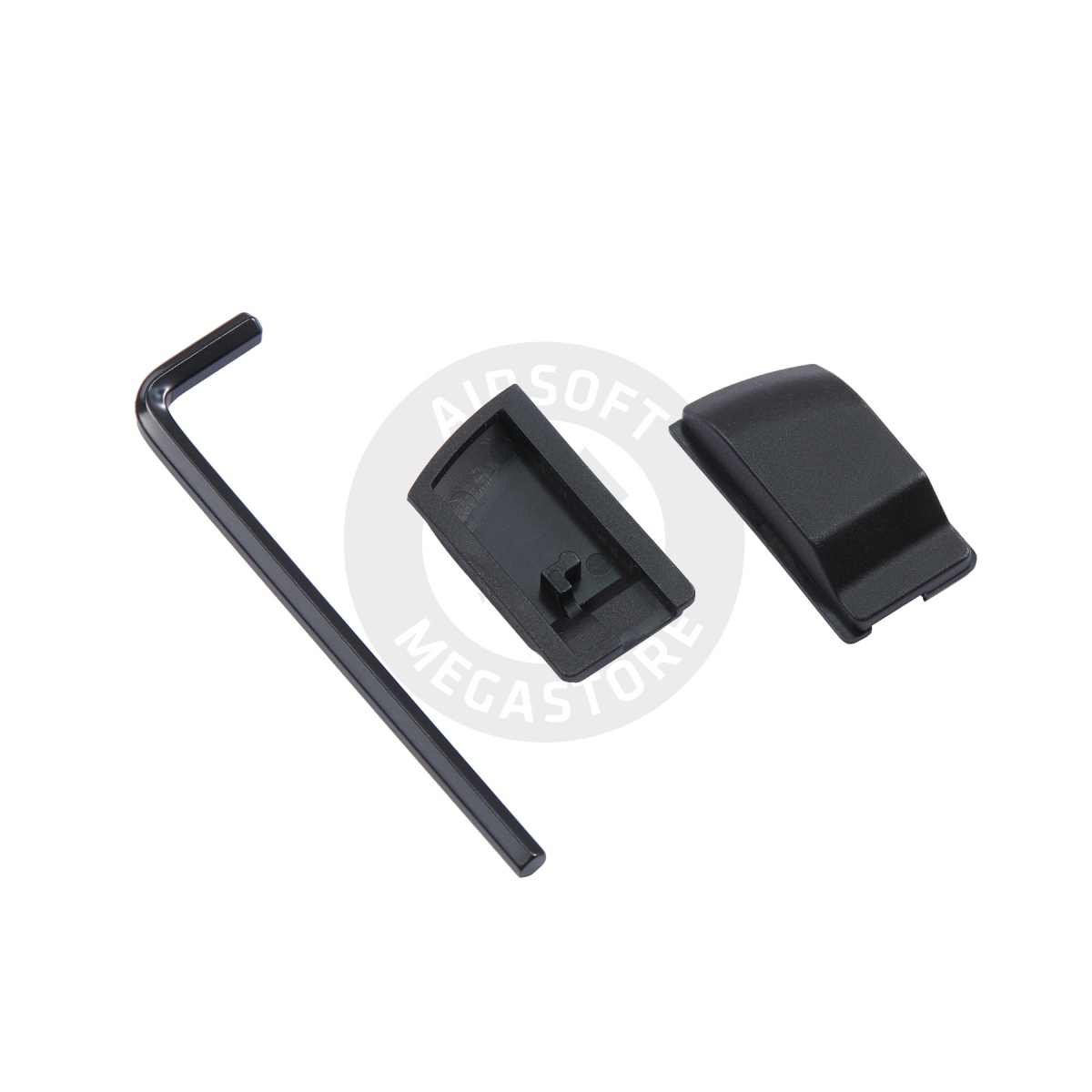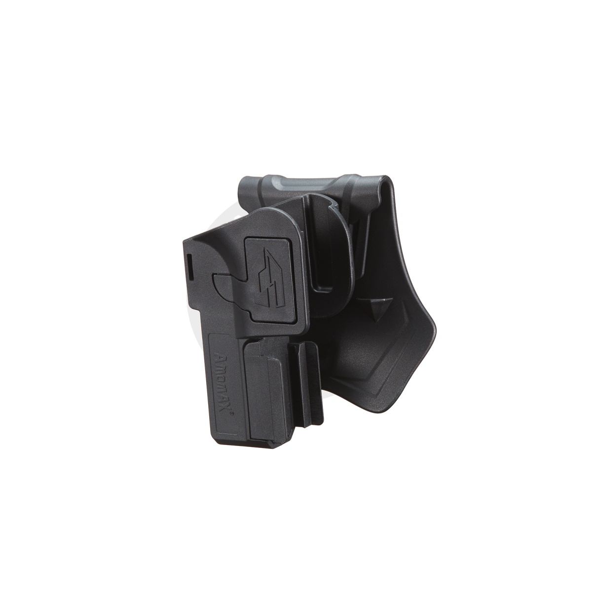 The Amomax Tactical Right Handed Holster for STI Hi-Capa 2011 Series Pistols in Black offers versatile functionality with compatibility across four transport platforms—paddle, belt clip, MOLLE, and thigh plate. Its 360-degree rotation ensures quick access from various angles, while the classic finger release secures the pistol during active movement. Designed from durable polymer for long-lasting use, this holster is perfect for right-handed users. With a sleek, tactical black finish, it provides discreet performance. Compatible with Hi-Capa GBB pistols from top brands like Tokyo Marui, WE Tech, KWA, and KJW, this holster is ideal for tactical enthusiasts seeking reliability and adaptability.