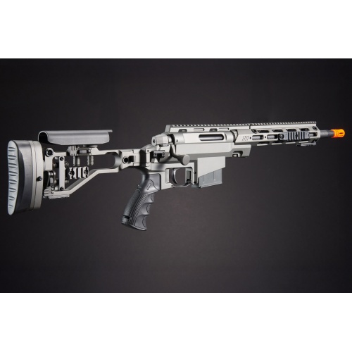 The ARES MSR303 Quick-Takedown Airsoft Sniper Rifle is a premium precision platform designed for serious marksmen who demand accuracy, versatility, and durability in one package. Built on the proven ARES Striker spring-powered system, this sniper rifle delivers consistent 400 FPS performance, making it ideal for long-range engagements in competitive airsoft matches. The rifle features a CNC aluminum upper receiver and handguard with modular rail sections, giving players the flexibility to mount optics, bipods, or other accessories. Its carbon fiber outer barrel not only reduces weight but also adds strength and a professional finish. The quick-takedown system allows every part of the rifle to be assembled or disassembled without tools, making transport and maintenance exceptionally easy.