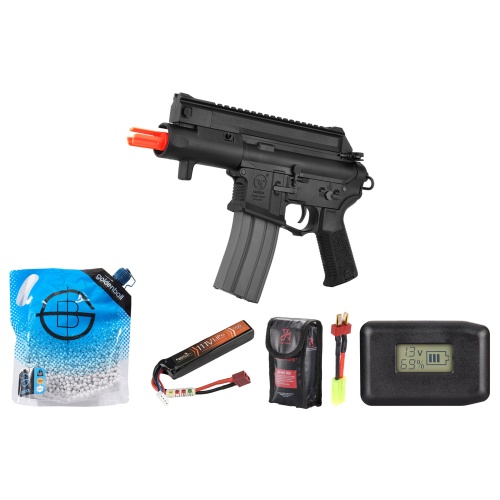 Ares Amoeba M4 CCP AM-003 Airsoft Aeg Pistol W/ EFCS - Battery/Adapter/Charger Combo - (Black)