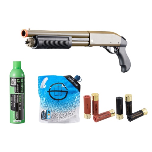 Golden Eagle M8881 3/6-Shot Pump Action Gas Airsoft Sawed-Off Shotgun Shell/Green Gas Combo - (Tan)