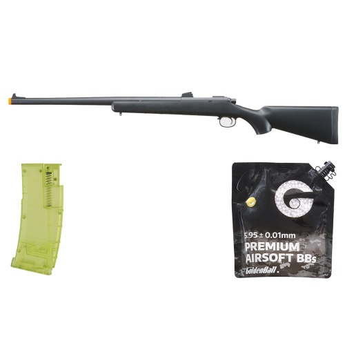 This complete bundle adds significant value for dealers by pairing the rifle with two high demand accessories that improve performance and boost customer satisfaction. The G Force 5.56 STANAG style clear speed loader enhances usability with its 400 round capacity, compact design, and protective nozzle cover, offering fast reloads across pistols and AEG magazines. The GoldenBall 0.30 g premium grade BBs deliver polished seamless construction for improved feeding, accuracy, and grouping, giving players a noticeable performance boost when transitioning to heavier ammunition. Combining these accessories with the HA 231 allows dealers to promote attractive airsoft gun deals, discounted bundle packages, and ready to play sniper kits that appeal to new users looking for value and savings. This bundle positions the HA 231 as an excellent entry level sniper solution with meaningful upgrades included, improving search visibility, increasing conversion rate, and offering strong margins for retailers seeking fast sell through in the beginner sniper rifle category.