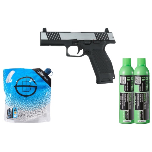 Kizuna Works MKW Full Sized Gas Blowback Airsoft Pistol - Green Gas Combo - (Chrome/Black)