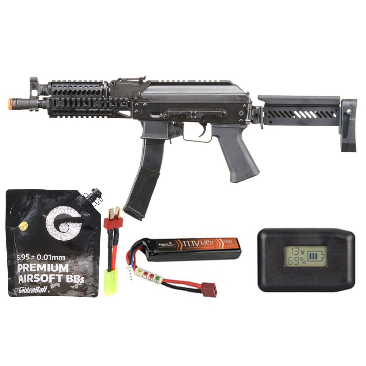 The LCT ZP-19-01 Vityaz AEG Rifle with folding stock is a premium steel-constructed replica built for realism and battlefield performance. Weighing nearly eight pounds with a solid steel and aluminum body, this rifle captures the look and feel of its real steel counterpart while maintaining durability for long-term use. It comes equipped with a Version 3 gearbox using 9mm bearings, brass cylinder with chrome plating, CNC aluminum cylinder and piston heads, and a steel ball bearing spring guide for smooth, reliable operation. The folding stock provides flexibility for both tight CQB scenarios and extended-range engagements, while the quad RIS handguard, top rail, and AK-style side optic mount allow extensive customization with optics, grips, and tactical accessories. The rifle includes twin 50-round magazines, realistic furniture, and ambidextrous sling loops, offering both authenticity and functional versatility. With a compact folded length of 18.5 inches and extended length of 26.25 inches, this rifle is designed for adaptability without sacrificing performance. This bundle is strategically designed to offer huge savings for dealers and customers alike by combining the high-end LCT ZP-19-01 with all the essentials needed to get started. It includes the Lancer Tactical LCD Universal LiPo Balance Charger with automatic cut-off safety features, the Golden Ball 3000-round ProSlick Seamless BBs for consistent accuracy and feeding, a Lancer Tactical 11.1v 900mAh 15C LiPo battery for quick trigger response, and an Intellect Airsoft Deans Battery Adapter Cable for maximum compatibility. By offering this rifle with a charger, adapter, and high-quality BBs in one complete package, dealers can promote this as a ready-to-go discounted bundle that drives traffic and sales. Highlighting bundled deals and exclusive savings positions this package as an excellent option for airsoft product sales, ensuring strong appeal to players seeking both performance and value while boosting visibility across dealer listings and search engines.