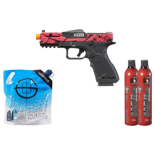 Poseidon CSI XG8 Gas Blow Back Aluminum Pistol - Green Gas Combo - (Red/black Splash Anodized)