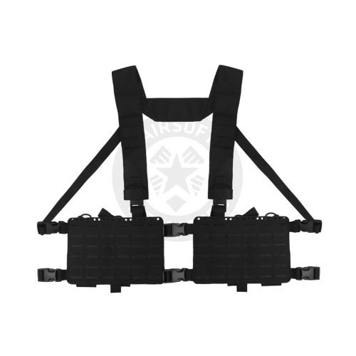 Introducing the Tactical Alpha Chest Rig by Code 11 Gear. Versatile design with molle compatibility, split chest rig, and secure elastic pouches. Perfect for tactical gear organization in intense airsoft battles.