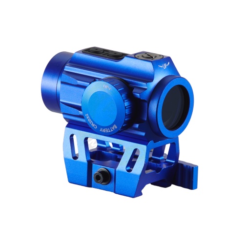 Designed for speed and versatility, this one power reflex sight keeps both eyes open shooting natural and fast. The adjustable brightness and color options let you tune the dot against your backdrop, whether you are running a blue themed setup or a classic black rifle. The QD riser makes it simple to swap between rifles or clear the deck for iron sights during training. Textured turrets give positive feedback for on the fly adjustments, and the aluminum shell shrugs off bumps on barricades and vehicles. Search friendly phrases such as red dot sight, green dot sight, quick detach riser, Picatinny optic, and airsoft red dot are used naturally to help players discover this model. If you want a durable blue optic that mounts quickly, zeros easily, and stays locked through heavy movement, the Lancer Tactical 1X25 2 MOA Dot Sight delivers reliable performance and standout style.