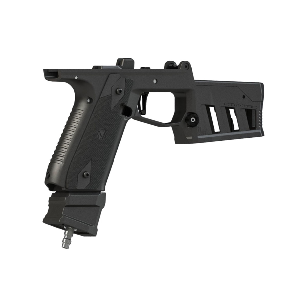 Engineered for compatibility, this system works with a wide range of AEG M4 magazines including popular options from PTS, Poseidon, Guarder, and G&G, making it easy to integrate into existing airsoft gun loadouts. The CNC aluminum magazine release ensures solid engagement and consistent performance, while the included adjustable VELO competition trigger allows fine tuning for faster and more responsive trigger action. Designed to support high pressure air systems, this kit is ideal for players building a dedicated HPA setup focused on performance and efficiency. Compatible with most aftermarket and factory upper assemblies as well as various mag wells, it offers flexibility for custom builds. With its advanced design and modular capability, the CTM TAC M4XIMUS kit delivers a unique blend of pistol agility and rifle functionality, making it a standout upgrade for serious airsoft players seeking maximum performance.