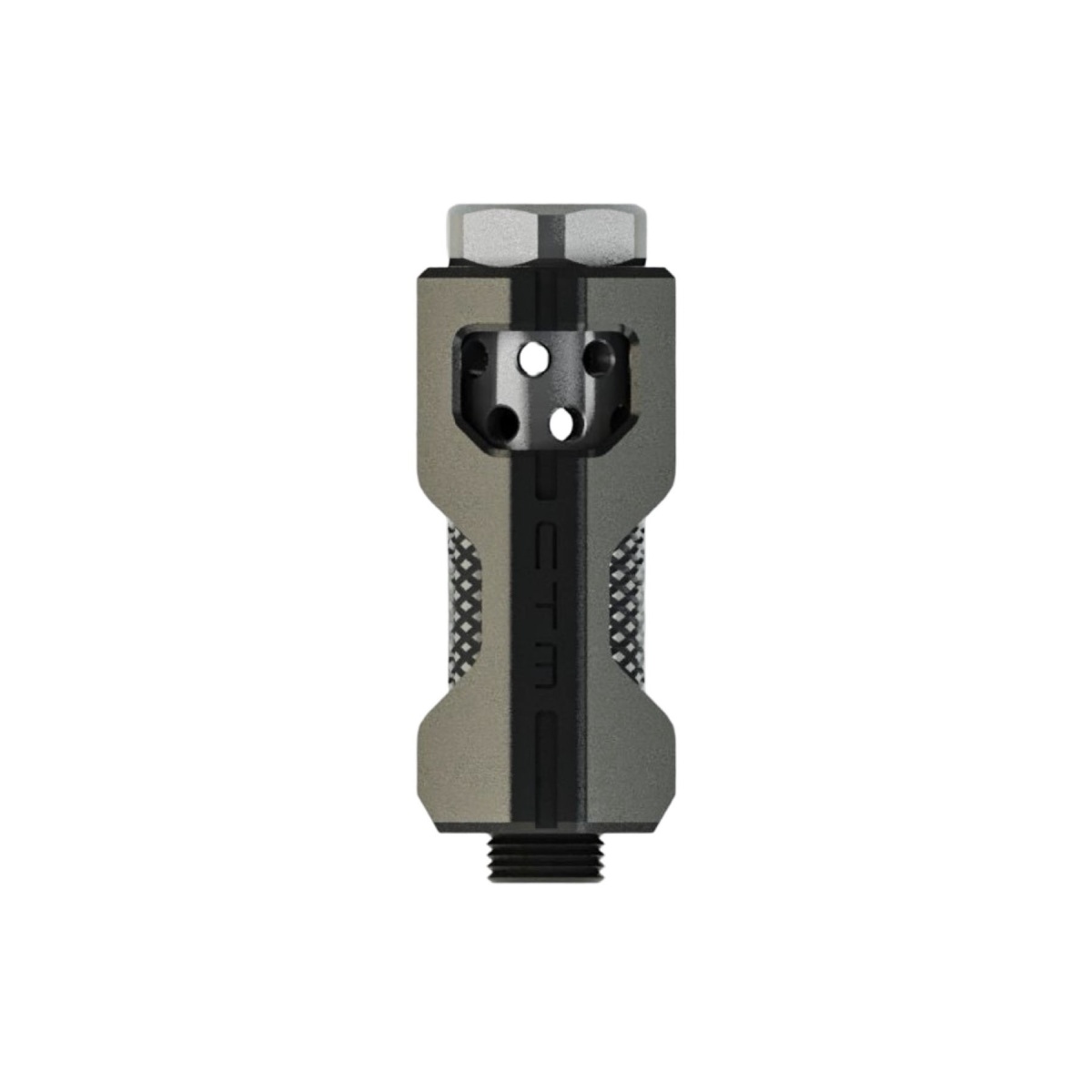 The CTM CNC Hi-Capa Compensator with 11mm to 14mm CCW Adapter is a precision upgrade designed to enhance both the performance flexibility and visual impact of any Hi-Capa airsoft pistol. CNC machined from high strength 6061 aluminum and reinforced with steel components, this compensator delivers a durable yet lightweight solution for players looking to refine their build. Its four sided ported design draws inspiration from real firearm compensators, giving your setup a more aggressive and competition ready appearance. Engineered specifically for Hi-Capa platforms, it features a unique mounting system that integrates seamlessly with adapter threaded outer barrels. The included stainless steel adapter expands compatibility by converting 11mm threads to 14mm CCW, allowing for broader integration with suppressors, tracer units, or other muzzle accessories. It also provides the ability to conceal extended inner barrels within the compensator, maintaining a clean and streamlined profile.