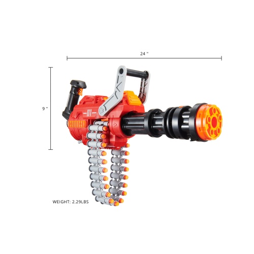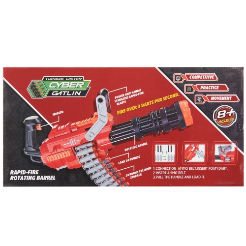 The Cyber Walker Manual Gatling Rapid-Fire Dart Blaster is a fun addition to your arsenal. With a high powered, belt fed design. You can rapid fire this blaster and reach up to 10 meters away! The ergonomic charging handle make it very easy to charge the blaster for quick shooting. The futuristic design and rotating barrel adds to the fun in every foam dart battles!