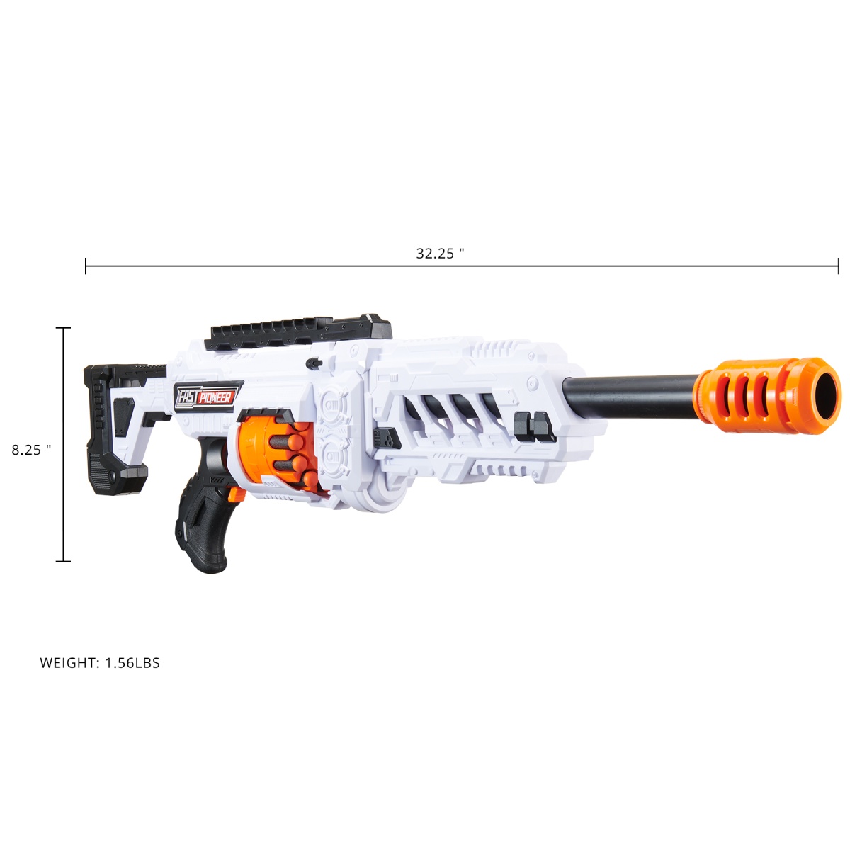 Gear up for action with the Cyber Walker Fast Sniper XL Electric Dart Blaster, the ultimate long range foam dart blaster! Whether you are battling it out in the backyard or dominating indoor arenas, this powerful blaster was made for range, accuracy, and excitement with every shot!