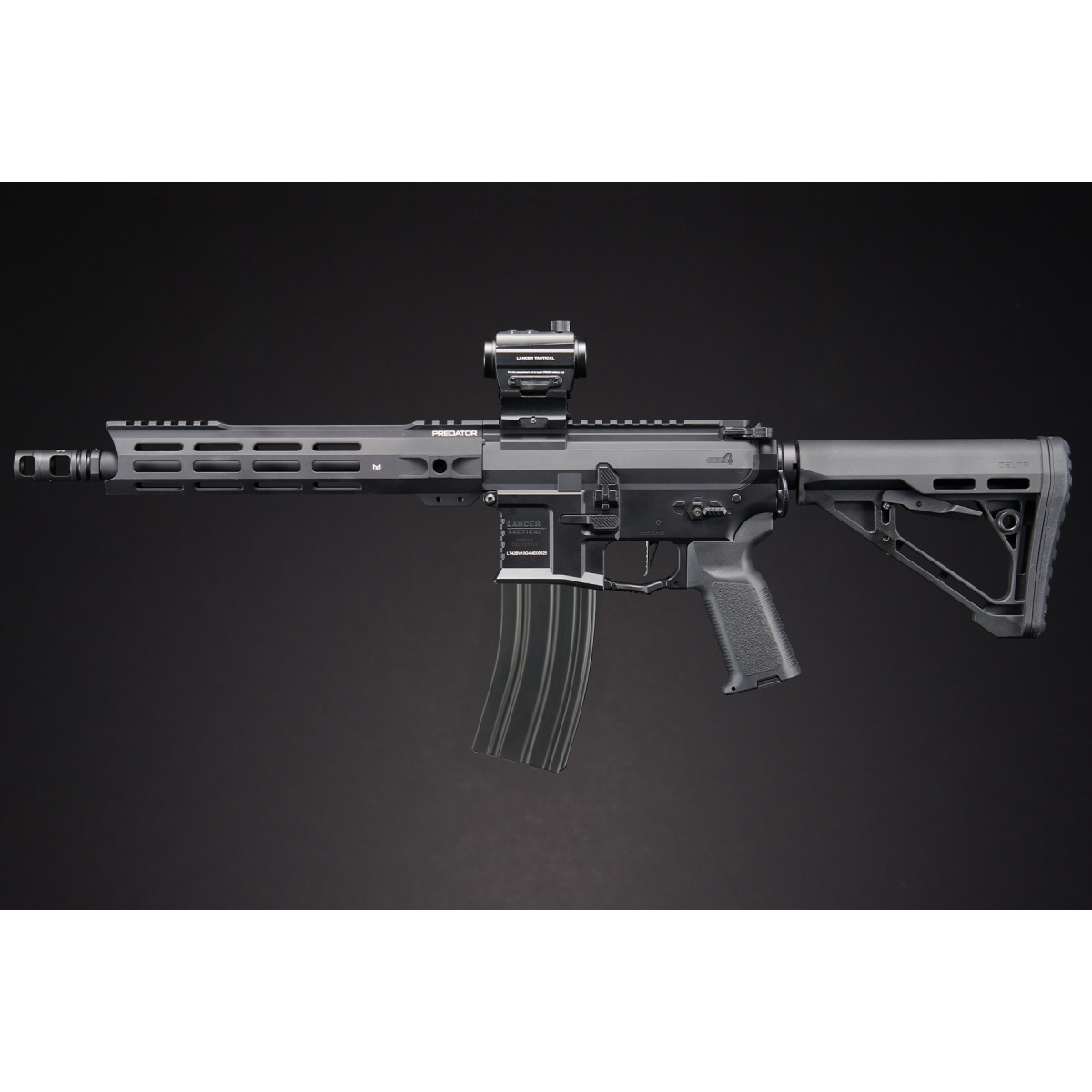 The Dr. Gearbox Custom LT-42BV Gen 4 "ALPHA" Full Metal AEG Rifle is a powerhouse airsoft rifle built for elite performance and customization. Designed by Lancer Tactical, this high-performance AEG comes pre-installed with a Nebula 2 programmable MOSFET, giving players enhanced trigger response, fire mode customization, and improved battery efficiency. The 18:1 upgraded gear set ensures smooth and fast cycling, while the 30K brushless motor delivers exceptional speed and durability. Precision and accuracy are top-tier, thanks to the Maxx CNC Hopup Unit, Maple Leaf AEG 60-degree bucking, and a 6.03mm tight bore inner barrel, making this rifle ideal for both CQB and long-range engagements. The M135 AEG spring provides a strong muzzle velocity of 380-400 FPS, ensuring maximum impact on the field. Featuring a quick-change spring system, players can easily adjust power output to match field regulations.