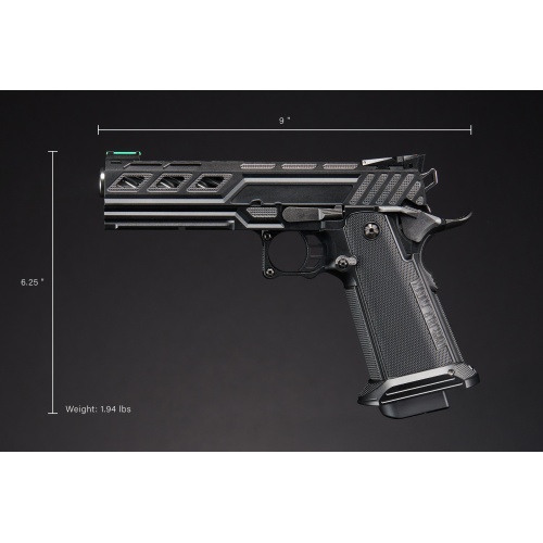 Internally, the Dr. Gearbox Custom Type-Z Hi-Capa is preloaded with premium upgrades for superior performance. It features a Dr. Black 5.1 spring rod, "Favos" outer barrel, 113mm inner barrel, and Type-B grip, all designed for enhanced accuracy, reliability, and gas efficiency. Powered by green gas, this 250-300 FPS GBB pistol delivers a crisp, realistic blowback action, adding to its authenticity. The adjustable hop-up system ensures precision shooting, making it effective in both CQB and mid-range engagements. Showcased at Shot Show '25 and the Lancer Tactical 2025 catalog, this Hi-Capa is a must-have for speedsoft players, competitive shooters, and collectors. With a field-strippable design, easy maintenance, and unmatched customization potential, the Dr. Gearbox Custom Tokyo Marui "Type-Z" 5.1 Hi-Capa GBB Pistol is built to dominate the airsoft battlefield.