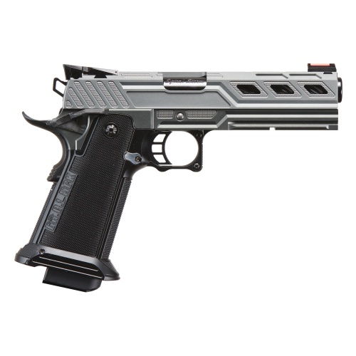 Designed for optimal comfort and control, the Zeta features an upgraded Dr. Black "Z" frame paired with a slightly textured Dr. Black Type "B" grip. These elements provide a secure and ergonomic hold, ensuring steady handling during high-speed engagements. The enhanced recoil spring rod allows for seamless cycling and reliable shot consistency.