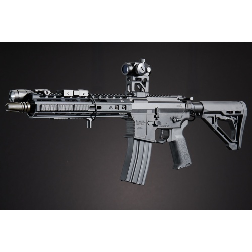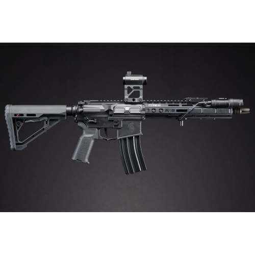 Available now, the Custom Pulse Lancer Tactical Gen 4 Predator 10 inch SBR AEG with Aster II Bluetooth ETU delivers advanced performance in a compact and aggressive platform. Built with a high quality billet style metal alloy receiver and a precision CNC machined 10 inch M LOK handguard, this short barreled rifle configuration is perfect for both indoor CQB play and outdoor skirmishes. The rifle chronos at 380 to 400 FPS and comes with a 290 mm 6.03 mm tight bore barrel for improved accuracy and range. The highlight is the pre installed GATE Aster 2 Bluetooth programmable MOSFET, giving players full control of firing modes, trigger sensitivity, and real time diagnostics through the Gate Control Station app. Features like ambidextrous fire controls, charging handle, functioning bolt catch, and a full length Picatinny rail give this airsoft rifle the modern ergonomics and flexibility serious players demand. A quick change spring system, Delta stock with rubber buttpad, CNC hop up chamber, and a high speed 140 round mid cap magazine complete the field ready package. This custom build enhances the Predator platform with premium aftermarket upgrades for both style and performance. The aggressive WE prong style flash hider pairs with a BG Defense MK2 style full metal handguard, while Atlas M LOK rail covers and an ACW finger stop add control and comfort. Targeting is streamlined with a CA mini red and green dot sight mounted via an Atlas Unit Lite optic mount, while illumination comes from a Ranger Armory 540 lumen M LOK scout flashlight and ACW pressure switch mount. Internals are reinforced with SHS 13:1 steel gears, a Lancer Tactical reinforced piston, Maple Leaf 6.02 mm inner barrel, Super Macaron bucking, Solink brushless motor, and Solink M130 spring for durability and upgraded response. Packed with cutting edge electronics and backed by precision parts, the Custom Pulse Predator stands out as one of the most advanced Bluetooth ETU equipped airsoft rifles available today.