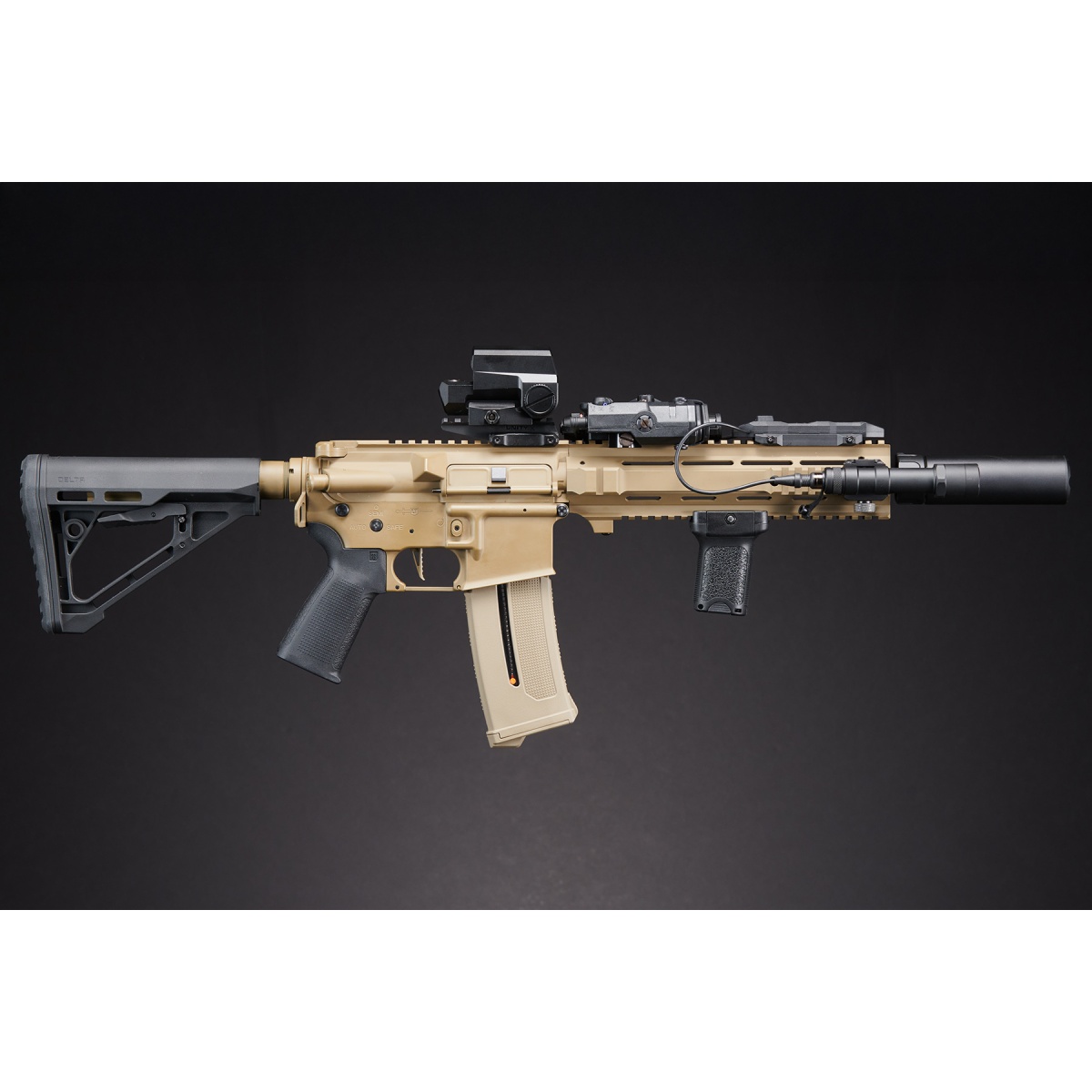 The Custom Infamous Angel - Lancer Tactical Gen 4 L119A2 M4 Full Metal Airsoft Rifle - (Tan/Black) is a premium AEG that delivers elite-level performance and realism right out of the box. Built on Lancer Tactical's full metal Gen 4 platform, this rifle features a 10-inch M-LOK/Picatinny rail system, an adjustable hop-up, 16:1 steel gear set, and a 35K high-torque motor. The integrated Nebula2 MOSFET with optical sensor enhances trigger response and allows for programmable upgrades, making it ideal for competitive play. Firing at an aggressive 390-400 FPS, this rifle delivers power, precision, and durability. With a Deans plug, quick-change spring system, and full metal construction, it's engineered for serious players seeking reliability under pressure. What truly sets the Infamous Angel apart are its extensive premium upgrades. Outfitted with an Atlas Custom Works LCO red/green dot sight, BCM vertical grip, M600B scout light, and LA-5C PEQ box with visible and IR lasers, this rifle is mission-ready. The PTS EPM1 250-round magazine ensures consistent feeding, while the Laylax Prometheus 6.03mm inner barrel and Maple Leaf 75 degree Super Macaron bucking boost range and accuracy. Additional enhancements include an M130 spring, CNC air seal nozzle, SHS 13:1 steel gear set, 295mm tight bore barrel, and Unity Tactical riser for optics. Paired with a durable Code 11 rifle bag, this custom L119A2 is built to dominate any skirmish. Whether you're searching for a high FPS airsoft M4 or upgraded full metal airsoft rifle, the Infamous Angel delivers exceptional performance, tactical flexibility, and standout looks for any field. Now available in a tan and black two-tone finish, this rifle is the ultimate centerpiece for any airsoft loadout.