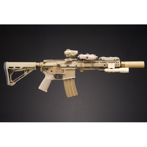The Custom Shetani Lancer Tactical Gen 4 L119A2 M4 M16 Full Metal Airsoft Rifle Tan is a high performance AEG crafted for players who demand both realism and firepower. Built on a full metal receiver with a 10 inch M LOK Picatinny hybrid rail system, this rifle offers extensive space for attachments while maintaining solid durability and balance. Firing at 390 to 400 FPS with a blazing 26 to 28 rounds per second, it features a programmable Nebula2 MOSFET with optical sensor, adjustable hop up, and Deans plug for efficiency. The Gen 4 gearbox includes a quick change spring system, and the full length top rail supports optics, lasers, and lights. Weighing in at 7 pounds with an adjustable 27 to 30.5 inch length, it is optimized for tactical flexibility. What makes the Custom Shetani truly elite are its extensive internal and external upgrades. Outfitted with an Atlas Custom Works SOCOM QD barrel extension, M600DF Scout Light, and PEQ 15 laser illuminator unit, this rifle is battle ready straight out of the box. Additional enhancements include a TR02 red dot sight, offset light mount, dual function pressure switch, PTS ergonomic grip, and a 6.02 tight bore barrel for improved accuracy. Internals are upgraded with SHS 13 to 1 steel gears, Solink brushless motor, high power M130 spring, Maxx CNC hop up chamber, and aluminum double o ring nozzle for consistent compression. This rifle is not just a custom M4, it is a complete high end airsoft rifle system. Whether you are searching for a full metal M4 AEG, a Lancer Tactical L119A2 upgrade, or a high performance custom airsoft rifle in tan, the Custom Shetani delivers elite level firepower and reliability. Now available for players who want to dominate.