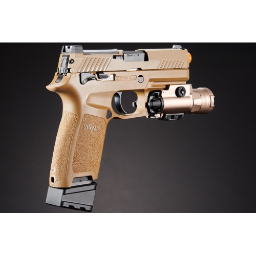 The Custom Draven Sig Sauer ProForce P320 M18 MHS Airsoft Gas Blowback Pistol is a faithful 1:1 replica of the US Army's official sidearm, tailored for serious training and competitive airsoft action. With a full metal slide and polymer frame, this GBB pistol feels authentic in-hand while delivering crisp recoil and a snappy cycling response. It runs on green gas and delivers 333 FPS with 0.20g BBs, featuring semi-auto and safe firing modes. The slide is optic-ready with a removable reflex sight plate, and it's fully licensed with laser-etched Sig Sauer trademarks for realism. Its adjustable hop-up, field-strippable design, and compatibility with both CO2 and green gas magazines make it a versatile sidearm for training, Milsim, and everyday skirmishes. This custom build is packed with high-end upgrades for unmatched performance. It features a 130 percent recoil spring set for enhanced cycle rate, a precision CNC aluminum trigger, and a takedown lever thumb rest for increased control and comfort. An Atlas Custom Works magazine extension pad improves reload handling, while the extended mag release speeds up mag swaps under pressure. The lightweight aluminum slide end cap enhances style without compromising performance. Internally, a Unicorn Airsoft 6.03mm tightbore barrel with upgraded bucking sharpens accuracy and consistency. For tactical edge, it includes an ACW XH35 800-lumen weapon light for low-light engagements. All components fit seamlessly with the Sig Air/VFC P320 platform, ensuring top-tier performance and reliability. To complete the package, this pistol ships with a rugged Code 11 13-inch pistol bag with internal mag straps and laser-cut Molle for modular storage. Whether you're prepping for CQB matches or looking for a realistic training pistol, the Custom Draven P320 M18 delivers duty-grade realism, smooth operation, and top-shelf upgrades in a compact and battle-ready platform.