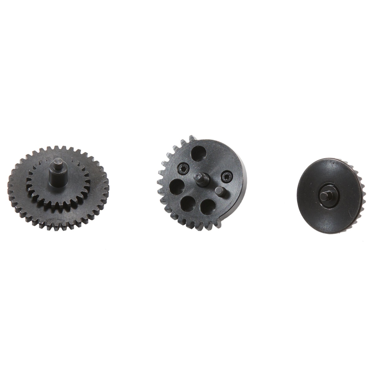 The E-Shooter 13:1 Airsoft AEG 3-Piece Gear Set is engineered for players who want to push their rifle into true high-speed performance territory. Designed specifically as an airsoft AEG gear set for builds that require fast cycling, this matched three-piece system uses a 13:1 high-speed gear ratio to boost rate of fire and sharpen trigger response. Whether you're replacing worn factory gears or upgrading a mid-tier replica into something more competitive, this set delivers the kind of efficiency and speed that high-performance AEG gearboxes depend on. Because it's optimized for smooth engagement and consistent movement inside the gearbox, players get more dependable cycling under sustained rapid fire, making it a solid option for fast-paced CQB builds or any setup focused on responsiveness.