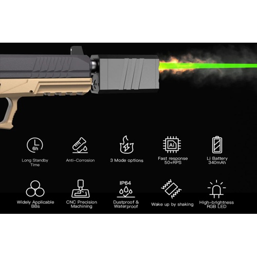 • Perfect upgrade for airsoft players who want a compact tracer solution with a realistic muzzle effect