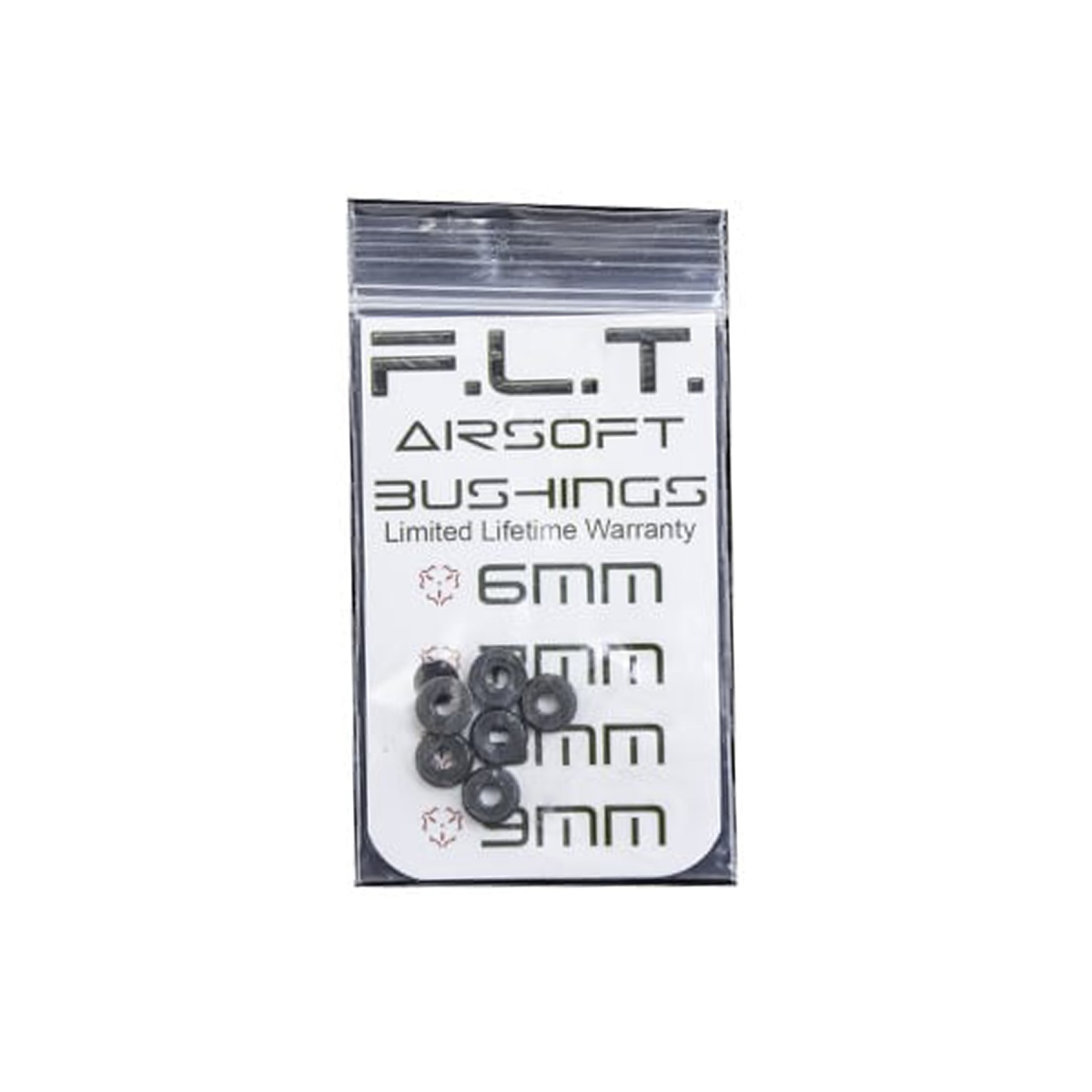 At F.L.T. airsoft, they strive to provide customers with the best products that the community can rely on and trust in their airsoft gun. Their staff has over 20 years of experience in building airsoft guns, and has devoted their time to gather information on what is necessary for a high performance build. These bushings have got to be one of the best, if not the strongest, in the airsoft industry. The bushings have been CNC machined from high-speed steel and burnished in a vibratory tumbler. This assists in eliminating any peaks or high spots that may cause damage to gear axles. The dimensions are checked on every bushing to ensure a quality product. These bushings also have the gear axle openings reamed. The inside is smooth for smooth gear axle operation. The outer diameter is then media blasted to texture the surface to aid in adhesion when using glue/epoxy to secure the bushings in place. Also, each piece has a low profile for proper gear clearance and shimming. The manufacturing process is superior to the standard sintering or PIM process that most Airsoft bushings may undergo. Most bushings on the market may have an HRC of 25-35. These sets have a Rockwell hardness of 50-55. The bushings are coated in silicone oil to prevent rusting during shipment and storage. This oil is not intended to be used as a lubricant. Please remove the silicone oil during installation, and utilize proper lubrication grease for optimal results.