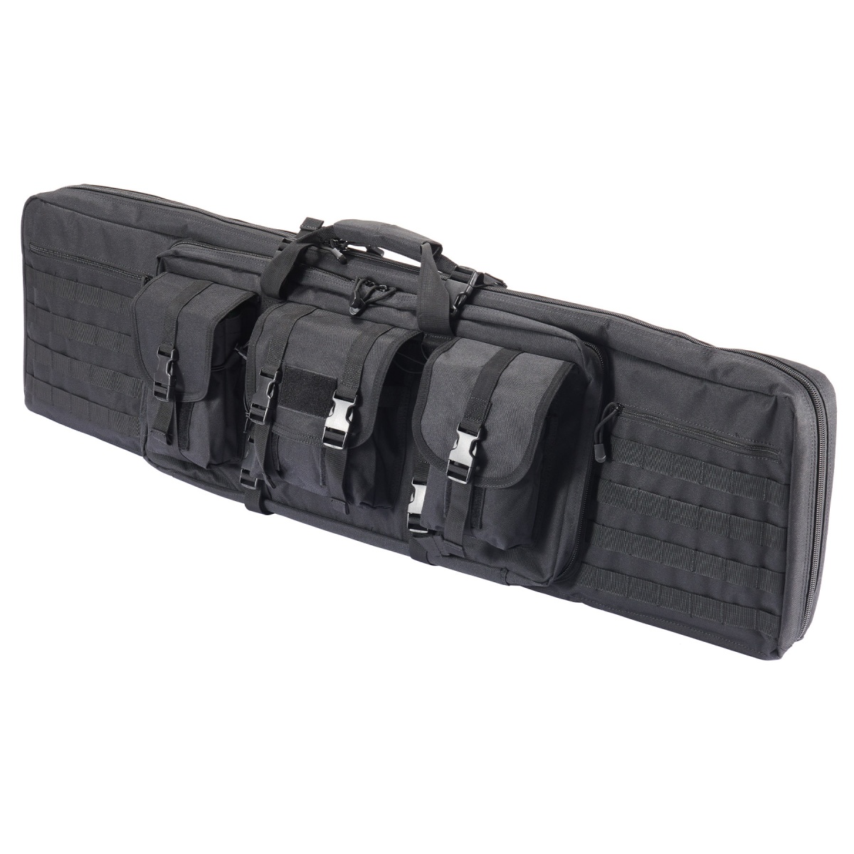 The Guawin 46 Inch Double Gun Bag is the ultimate solution for securely transporting and protecting your airsoft, hunting, or tactical rifles. Constructed from durable nylon fabric, this bag is built to withstand the rigors of frequent use while maintaining a lightweight and manageable design. Its spacious main compartment is capable of holding two full-size rifles up to 44 inches in length, kept safe and secure with an EVA foam brace that provides structural support and an EVA foam divider for added padding between firearms. Double velcro straps inside ensure your guns remain firmly in place during transport. The bag also features a secondary compartment that accommodates rifles or shotguns up to 34 inches, giving you the flexibility to carry multiple firearms or additional training equipment. Top and bottom buckle straps on each side keep your gear tightly secured, while the removable backpack straps with D-ring attachment points offer versatile carrying options for comfort and convenience. In addition to its superior storage capacity, the Guawin 46 Inch Double Gun Bag is designed for maximum utility in the field. The exterior includes three front accessory pouches with bungee fastener cords for quick access to magazines, tools, or other essentials, along with velcro panels for patches to personalize your loadout. Four lines of MOLLE webbing on each side allow for the attachment of extra pouches or gear, making this bag fully customizable to your mission requirements. Whether you are heading to the range, preparing for a skirmish, or traveling with your rifles, this double gun bag offers unmatched protection, organization, and style. Its rugged construction, tactical features, and ample storage make it a must-have for any serious airsoft player, marksman, or outdoor enthusiast looking for a professional-grade rifle transport solution.