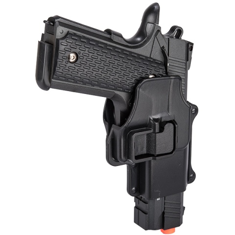 Galaxy M1911 Airsoft Metal Spring Pistol w/ Holster - BLACK