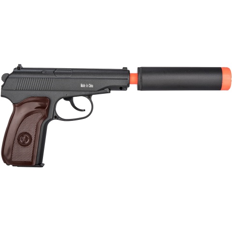 Galaxy G13H Airsoft Metal Spring Pistol w/ Mock Suppressor - WOOD